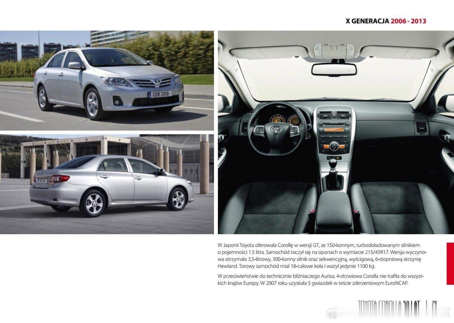 丰田卡罗拉50年简史(1966–2016)(第五辑)从1966年诞生到2016年50周年,历经11代,全球累计销量超4400万辆,成为全球最畅销家用车,中国登场与全球登顶(2000–2013,第9–10代 E120–E150)• 第9代(2000–2006):欧洲设计,2004年一汽丰田国产,定名“花冠”,13年卖131万+• 第10代(2006–2013):全球年销破130万,2013年累计4000万,稳坐全球销量第一。而且花冠也是WRC世界冠军级别的拉力赛车,早期拉力(1970s)• 第2代 TE25 Corolla(1600 SR):1973年WRC美国站Press-on-Regardless Rally夺冠,丰田WRC首胜。• 基于第8代花冠(E110)三门版打造,4WD+3S-GTE 2.0T,约300马力。• 1997芬兰站首秀;1998蒙特卡洛站Carlos Sainz夺冠(厂队首胜)。