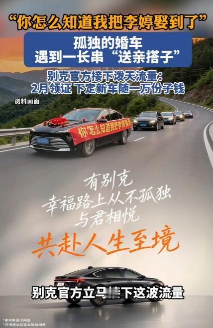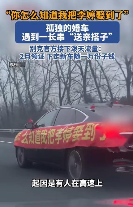 泪目!上海,一男子在路上开车,突然发现一辆婚车上贴了一张“你怎么知道我把李婷娶到了”的横幅,这让男子一愣,他往婚车后面看去,发现并没有车队,只有新郎自己开车拉着新娘。之后,男子朝婚车打了声招呼后,果断给他当起了车队,让人感动的是,接下来一段时间里,又陆续有陌生车辆加入“车队”交替陪跑。 春运期间的高速路上总是挤满了奔赴团圆的车辆,上海往江苏方向的路段上车流不息,车窗外来回掠过路边的护栏与指示牌。 每个人都在朝着家的方向赶路,谁也没料到,一段再寻常不过的归途,会因为一辆挂着俏皮横幅的婚车,悄然变成一场温暖全网的善意接力。 一位驾车行驶在路上的男子,目光不经意间扫过旁边的车道,一辆装饰简单的轿车瞬间抓住了他的目光。 车身只系了几簇喜庆的红花,没有繁复的拉花,没有耀眼的装饰,却在车窗旁挂着一条格外醒目的红色横幅,上面用直白又可爱的字体写着 “你怎么知道我把李婷娶到了”。 短短一句话,没有华丽的辞藻,却把新郎藏不住的喜悦与骄傲完完全全展现出来,男子看到这句话时先是愣了一下,嘴角不自觉地轻轻上扬,心里泛起一阵暖意。 他下意识地往婚车后方望去,原本以为这样显眼的婚车身后,会跟着浩浩荡荡的婚礼车队,可身后的路面空空荡荡,只有这一辆婚车独自在车流里行驶。 驾驶位上的新郎稳稳握着方向盘,目光专注地看着前方,副驾驶的新娘安静坐着,眉眼间带着温柔的笑意,这场没有排场、没有亲友车队的婚礼,在热闹的车流里显得格外特别。 这位男士没有丝毫迟疑,轻轻按响喇叭向新人示意问好,随后便主动放慢车速,稳稳跟在婚车后方,心甘情愿当起了临时的护航车队。 他没有想过博关注,也没有期待任何回报,只是单纯觉得,两个真心相爱的人奔赴婚姻,哪怕没有盛大的仪式,也不该在奔赴幸福的路上独自前行。 这份发自内心的善意,就像一颗投入湖面的石子,瞬间在整条高速上漾开了温暖的涟漪,短短十几分钟里,沿途的私家车主们纷纷注意到了这辆特殊的婚车,还有身后默默护航的车辆。 大家没有任何沟通,却达成了无声的默契,一台接一台的陌生车辆主动加入队伍,前后累计有近20 台私家车自发参与。 大家自觉交替领航、殿后护航,遇到车流密集、匝道变道的路段,还会主动为婚车留出安全距离,一排排双闪灯在高速上连成温暖的光带,把孤单的婚车护在中间。 婚车里的新郎和新娘李婷,很快就从后视镜里发现了这支突然出现的豪华临时车队,看着身后一长串素未谋面的车辆一路相随,新郎的眼眶瞬间泛红,新娘李婷更是忍不住落下眼泪。 原本她是千里远嫁,因为现实原因没有娘家人亲自护送,没有精心筹备的婚礼排场,只有爱人开车相伴,可半路收获的这份陌生温柔,直接填满了她心底所有的柔软。 两人在途经服务区短暂休息时,特意手牵手下车,捧着喜糖和喜烟,挨个向护航的车主们道谢,把新婚的甜蜜分享给每一个伸出援手的陌生人,简单的举动,却让在场的所有人都感受到了满满的幸福。 这场极简的远嫁之旅,没有世俗眼里的排面,却因为陌生人的一路陪伴,变得无比珍贵。评论区里没有嘈杂的争论,没有戏谑的调侃,满是暖心的祝福。 有网友说 “全网都是李婷的娘家人,一路为你保驾护航”,也有远嫁的姑娘分享自己的经历,被这份陌生的温柔戳中了心底最柔软的地方,还有人笑着调侃新郎的横幅太过可爱,这下全世界都知道他娶到了心爱的姑娘。 更让人觉得惊喜又暖心的是,这辆承载着幸福的婚车是别克品牌的车型,这一幕刷屏全网的温暖画面,也让别克官方意外接住了这份 “泼天的流量”。 官方没有选择生硬的商业宣传,没有借着热度夸大产品,而是顺着这份纯粹的美好,推出了格外贴心的福利活动,正式宣布在 2 月份领取结婚证的新人,只要下定别克旗下的新车,就能直接享受一万元的 “份子钱” 优惠。 品牌用最实在的方式,为每一对步入婚姻的新人送上祝福,也把街头的这份善意,延续到了更多即将步入婚姻殿堂的普通人身上,让这份温暖不止停留在高速路上,更走进了更多人的生活里。 从一台孤零零行驶的婚车,到一长串暖心的 “送亲搭子”,这场发生在上海高速上的接力,没有奢华的装饰,没有隆重的仪式,却藏着中国人最朴素的温柔。 在快节奏的生活里,我们总习惯关上车窗隔绝外界,行色匆匆地奔赴自己的生活,可这一次,陌生人之间的举手之劳,却汇聚成了最动人的浪漫。 没有剧本,没有炒作,没有刻意安排,所有的温暖都是自然流露,所有的祝福都是发自内心,这不仅是一对新人的幸福时刻,更是属于全体普通人的治愈瞬间。 对于这件事,您有什么想说的吗?欢迎评论区留言讨论。 信源:长江云新闻2026-02-12——《孤独的婚车遇到一长串"送亲搭子”别克官方:2月领证,下定新车随一万份子钱》