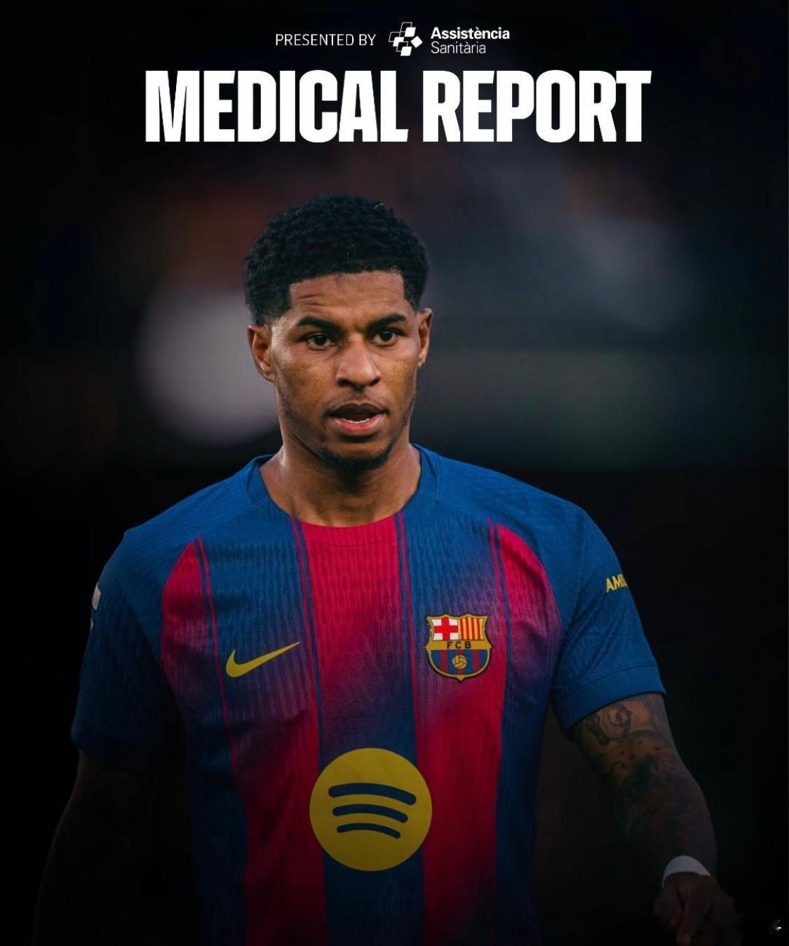 巴萨官方表示,在此前对阵马略卡的西甲比赛中,拉什福德的左膝遭到撞击,经检查确认,他将缺席对阵与马竞的国王杯半决赛首回合。