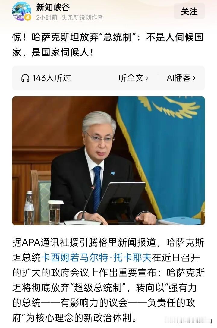个人与国实,谁为谁服务? 好像全世界无论多么伟大的人物,还没有说过:“不是个人为囯家服务,而是国家为个人服务。”并且还似乎在新宪法的规定上更加重视这一点。说这个话和对目前正在准备修改的新宪法有很大发言权的人,就是早已经闻名全世界的哈萨克斯坦总统托卡耶夫。 如果是一个出身平民百姓的思想家、理论家,说出这样的话和做出这样的事,虽然好像是很有意思,但也不足为奇,偏偏是一国大权在握的、在哈萨克斯坦无人可以超越其权的总统托卡耶夫,确实令人刮目相看,不容小觑。 对于“不是个人为国家服务,而是国家为个人服务”这句话,很有可能是让一些人如同晴天霹雳,大惊失色;更有可能让一些人表示强烈反对,如临大敌。但无论如何,哈萨克斯坦的总统托卡耶夫似乎就是这样说的,并且还计划从他现在做总统的时候,就开始向实现此目标开始行动。