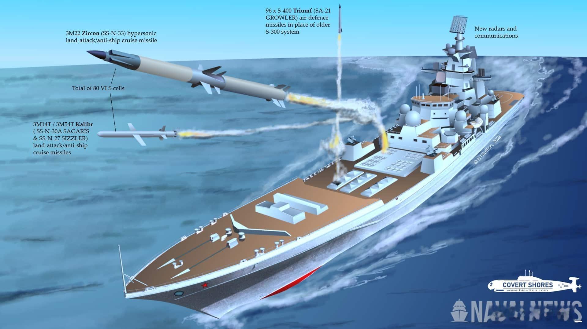 萨顿评论俄海军“纳希莫夫上将号”战列巡洋舰的改装,称该舰改装后拥有176个主要垂直发射单元,装备锆石高超音速导弹与S-400防空系统,完整武器配置的成本约为5亿美元,具体取决于弹药的具体比例。排水量28000吨,是世界上最大、火力最重的水面战斗舰。然而,尽管这些舰艇令人印象深刻,这个项目似乎正与海军的发展背道而驰。在无人战争时代,如此大型水面作战舰艇的未来似乎越来越令人怀疑。即使在无人机出现之前,将如此多的资金和火力集中在一艘船体上也存在挑战。但现在这变得更加可疑。该项目如今具备了虚荣项目的所有特征,既关乎力量的认知,也关乎实际军事价值。随着俄罗斯海军目前的骄傲——唯一的航空母舰库兹涅佐夫号——维护成本日益高昂,并可能被退役,“纳希莫夫上将号”在这方面的重要性可能日益增长。在特朗普政府领导下,美国也逐渐远离了更广泛的趋势,重新拥抱超大型主力舰的概念。新型3.5万吨的特朗普级战列舰远大于俄罗斯舰艇,每艘造价在100亿至150亿美元之间。此型大舰是否会建成还有待观察。