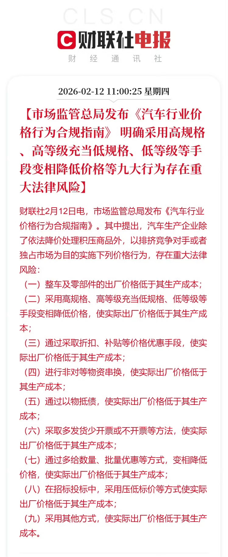 对卖车的(车企和4S店)来说,就是紧箍咒。生产端不能再用高规格零件当低规格卖,变相压价搞恶性竞争;销售端那些价格套路也全被划成了红线,敢越线就要担法律风险。汽车行业变相降价等存重大法律风险