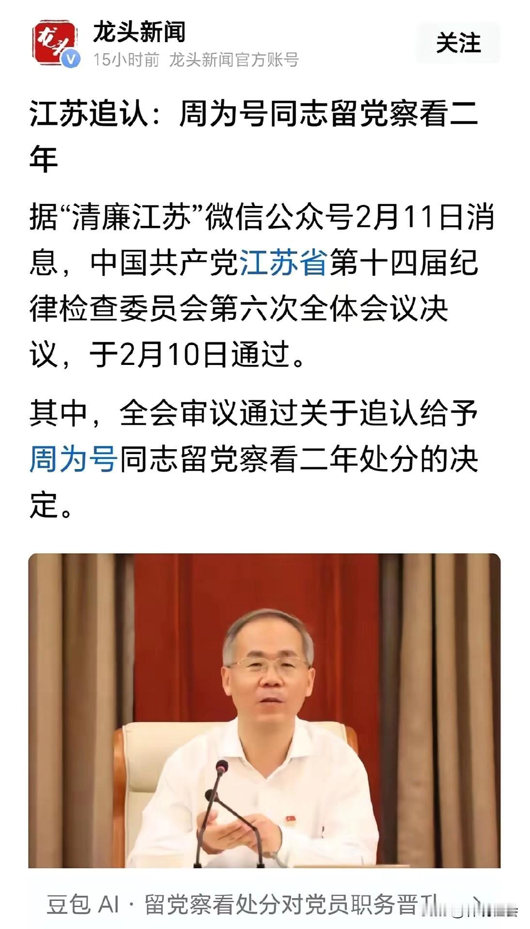 以前看新闻经常对牺牲后的英雄模范人物有这样的褒奖:追认其为党员、追认其为革命烈士、追授其一等功等等。所以,在大多数网友们的记忆中,追认、追授明显带有褒奖的意思,被追认和追授的对象,他们往往是已经去世或者已经牺牲的有功人员。 然而,2026年2月11日一个新闻,冷不丁的冒出来“追认某某某同志留党察看二年”,这样的表述让网友们大吃一惊!有网友质疑“追认留党察看”用词的适当性?于是,在网上发帖求普及:“追认处分”是什么意思? 其实,“追认处分”的用词没有一点问题。据了解,这名被处分的同志是纪委委员,按党章规定:对纪委委员的留党察看处分,必须由纪委全体会议决定,全会闭会期间,由纪委常委会先行作出处分决定,等下次纪委全会开会时,正式确认这个处分。总之,这个后来确认的处分与后来确认的褒奖一样,就是追认处分或追认褒奖。
