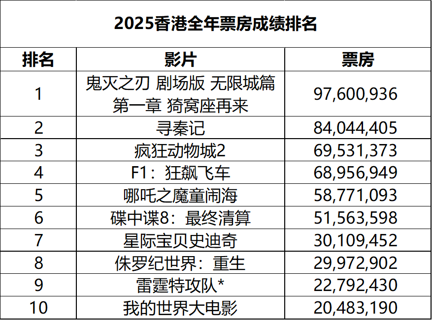 2026年第6周香港票房 :1.《寻秦记》6连冠,累计票房8404万排名香港影史第24,港产片第4;2.《东京出租车》在新片中表现最佳。(数据:香港贸发局)