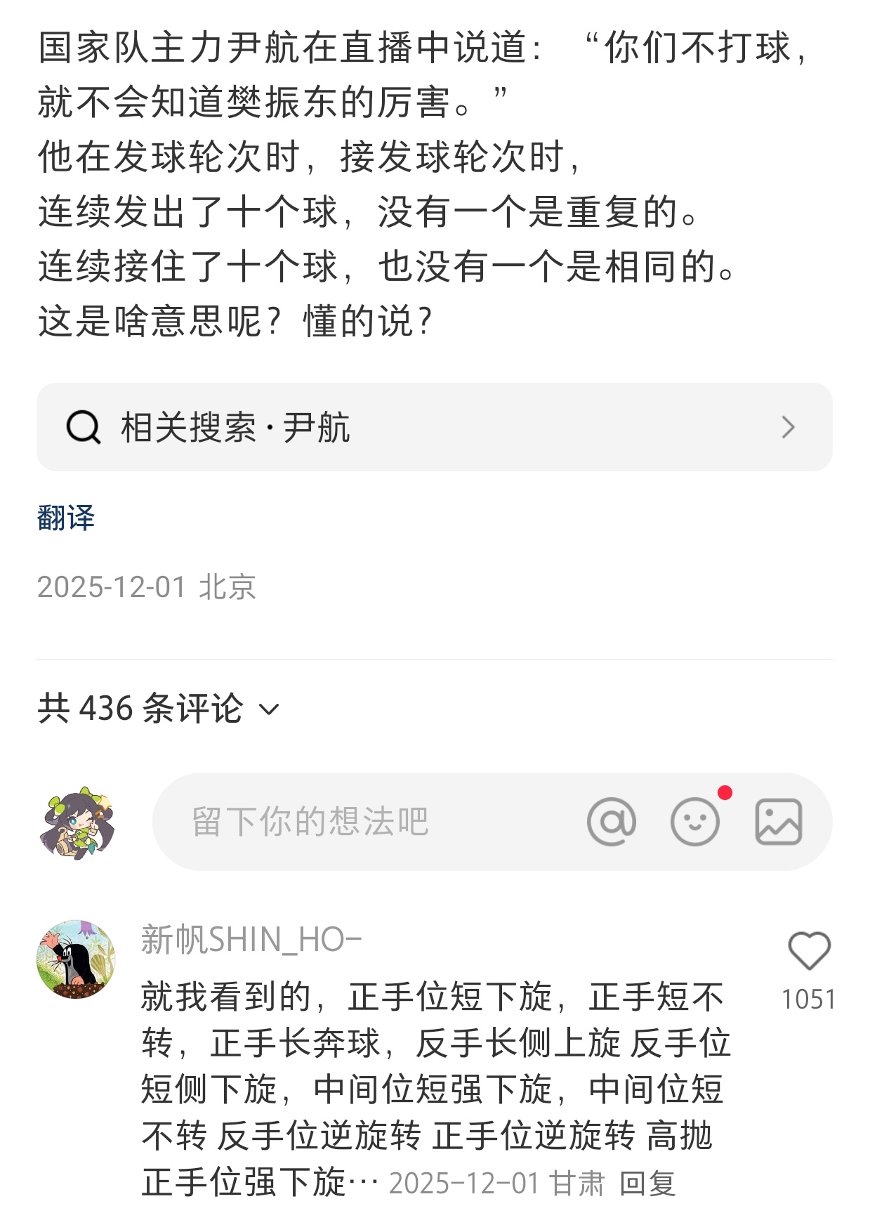 尹航把东哥看的太透彻了“N球N落点”。东哥的全面优势是用脑与算创造出来的。