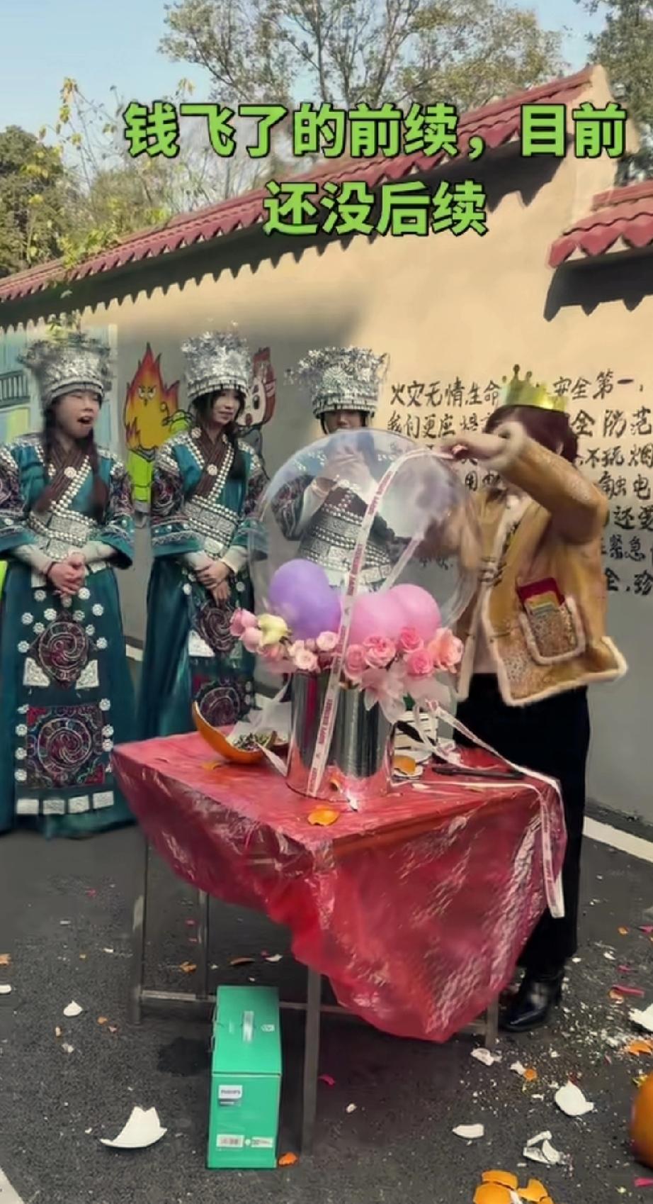 近日, 四川泸州有一位女儿给妈妈过生日,准备的生日蛋糕上面有一个大气球,解开丝带之后, 气球牵引着一沓钱飘了起来, 没想到他们不是在房间里过生日 ,而是在户外, 结果气球越飘越高 ,钱也拿不到手了 ,至今这一沓钱去向哪里不得而知 希望有好心的幸运的人能够捡到它。 妈妈的生日原本是想给妈妈一个惊喜 ,却不料这个小惊喜让人有些心疼 ,其实商家在卖出蛋糕之前也应该提示顾客要注意 气球里面装的是氢气 ,让顾客也有个心理准备 。 祝愿这位妈妈生日快乐的同时, 也希望她不要再难过 ,换一个角度考虑 ,破财消灾, 就当是为她挡灾了。 图片来源于网络 如有侵权 请联系删除