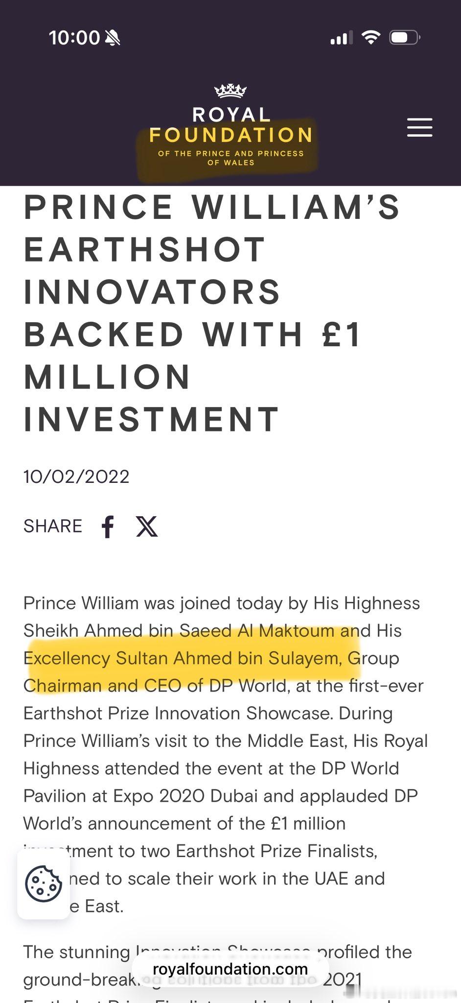 【揭皮秃凯】威廉王子曾多次在伦敦和中东会见 DP World 首席执行官苏丹·艾哈迈德·本·苏莱姆。 两人于 2016 年3月14日和3月15日在巴基汉宫的 DP 世界伦敦门户港会面,随后苏丹联系了炼铜爱泼斯坦👇2016 年3月14日威廉王子与苏丹·本·苏莱姆会面后,苏丹 2016年3月15 日给爱泼斯坦发邮件,告知他将与威廉王子一同出席活动,爱泼斯坦于 2016 年3月16日回复:“有趣”。