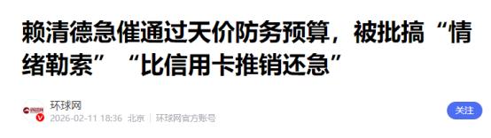 台“民众党”正式宣布 2月11日,针对台独分子赖清德吁朝野年后开议速审国防特别