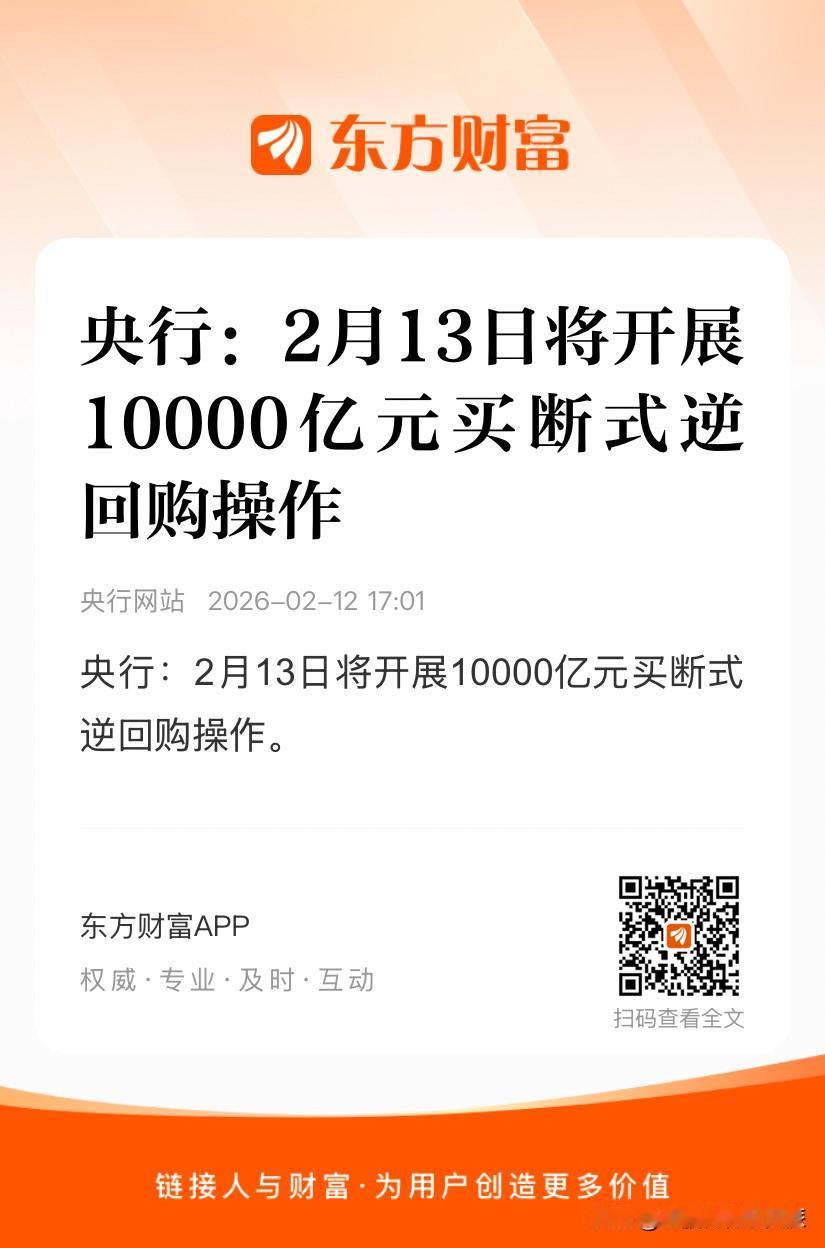 盘后再来利好,明天又是春节假期前的最后一个交易日,会有资金买账吗? 若从消息面分析,直接是利好。虽然央行没有直接下场“买股票”,但这万亿级流动性对证券板块是实打实的催化剂! 无外乎以下三点: 第一点:万亿级流动性投放市场提振投资者做多情绪,吸引增量资金入场,A股成交量有望维持高位! 第二点:有利于两融业务扩张,提升券商自营与资管业绩,提升债券市场流动性。 第三点:流动性宽松既提振市场信心又能直接降低券商融资成本,利好自营业务;若带动成交活跃,佣金收入也直接受益。 结论:只要钱能流入股票市场,作为离钱最近的板块,证券必然是主要受益者之一,这属于“水源”层面的直接支持。 明天而言,就看有没有资金愿意入场买账了呀。 要是不得涨,可能就得创新低喽