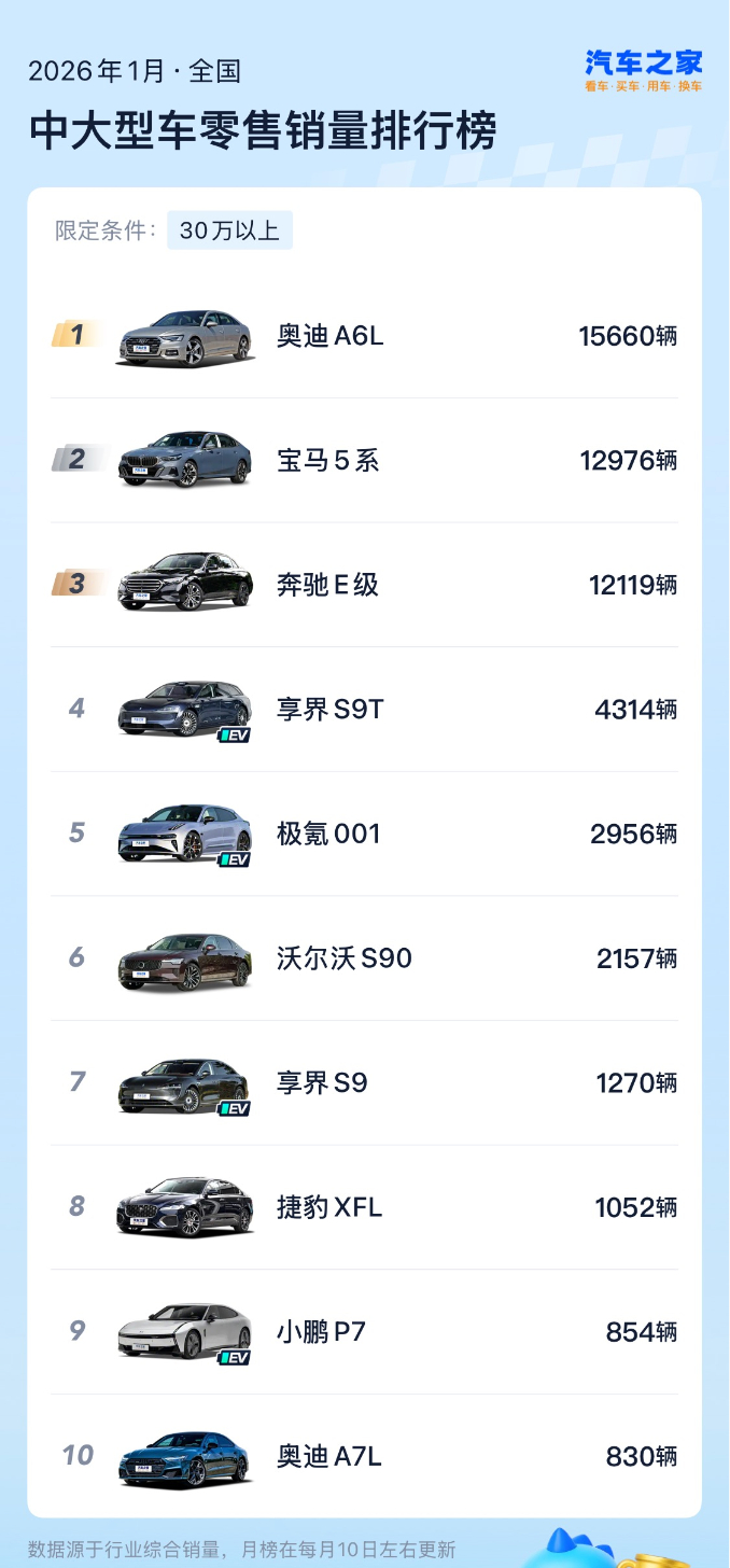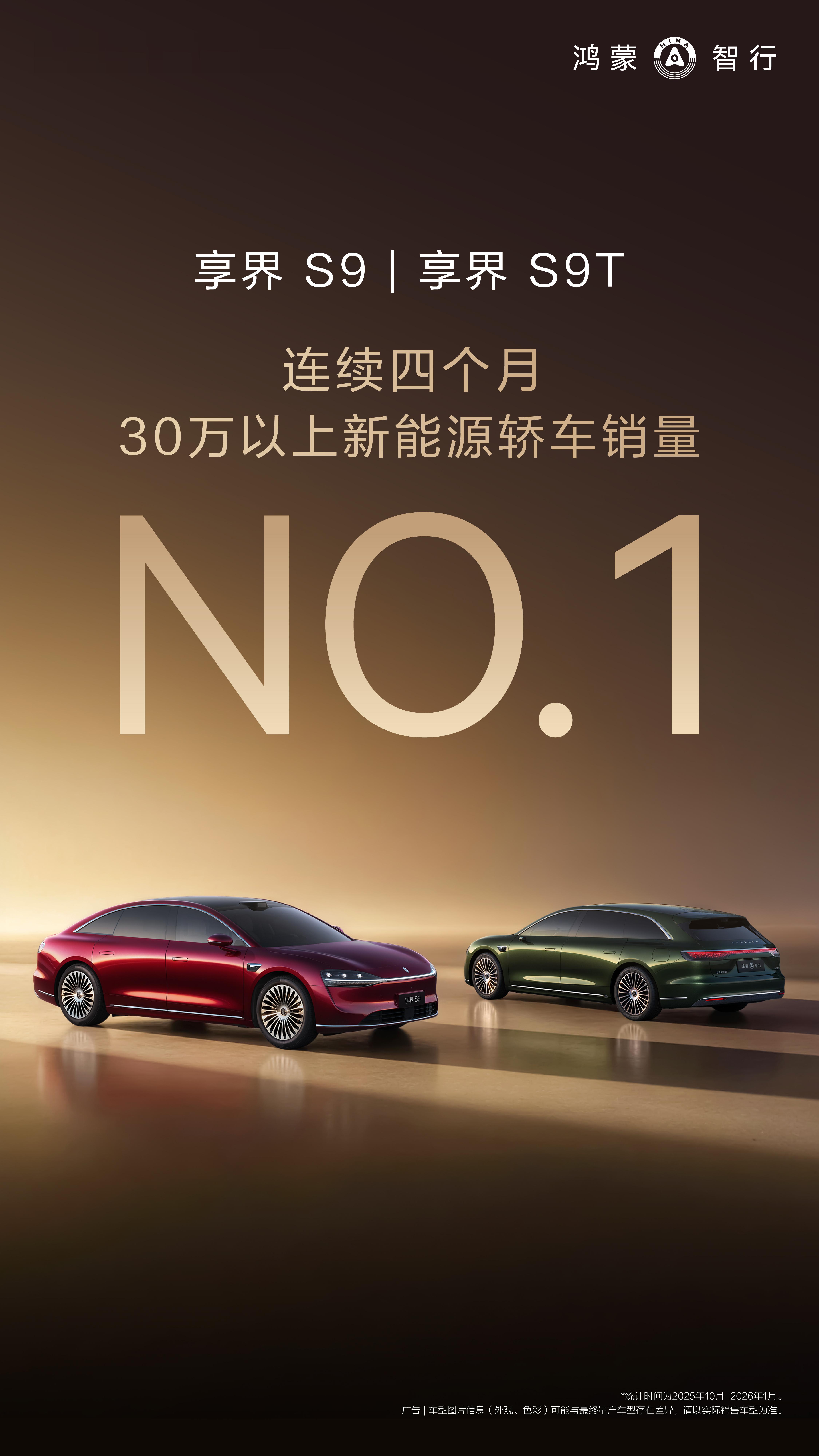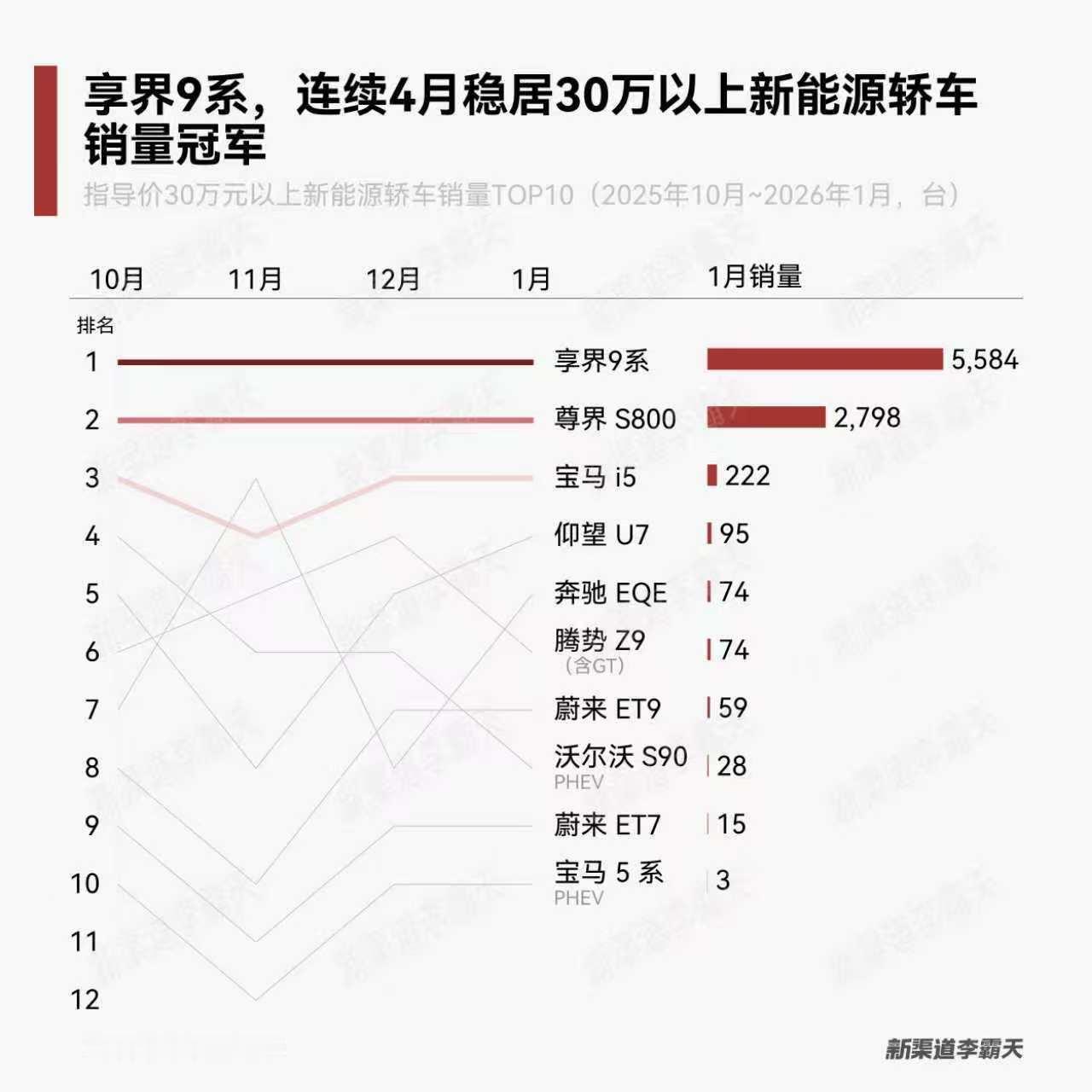 看了一眼 1 月份新车销量,享界 两款车合计销量5584台,已连续4个月稳居30万以上新能源轿车销量冠军。作为车主,真骄傲呀!