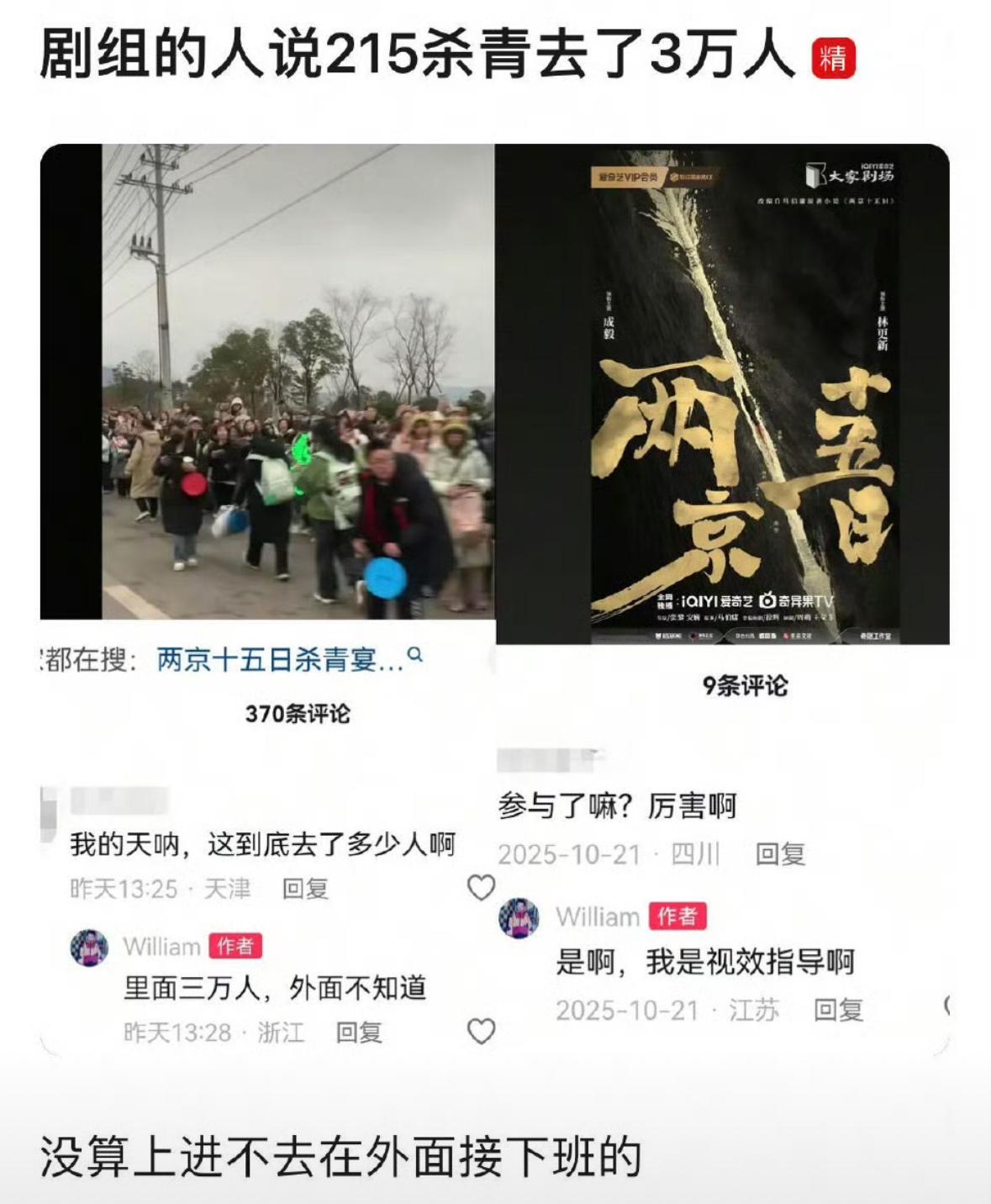 两京十五日剧组的人说成毅杀青去了3万人,这只是里面的,外面的人还没算进去。拍了成毅四个月,他的人品独一档,没有明星架子,经常为群演说话维护他人。人品和人气双顶的是谁啊?是成毅。他值得你们喜欢。😍