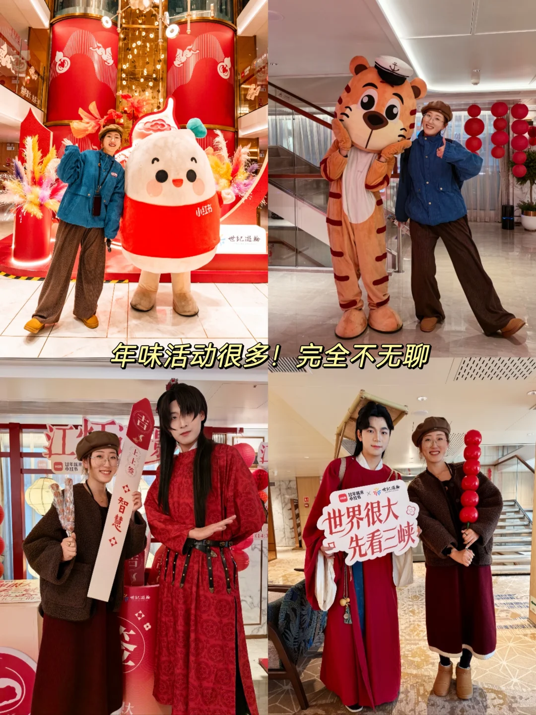 🥰这次特别开心搭上了“新年主题船”,年味超浓,从登船开始就沉浸在喜庆氛围里,除了上岸的行程,船上的活动都非常丰富:专家诗词沙龙、诗词互动、彩绘三峡石、猜灯谜、小春晚、甲板祈福点灯……每天都有新花样,完全不会无聊!
