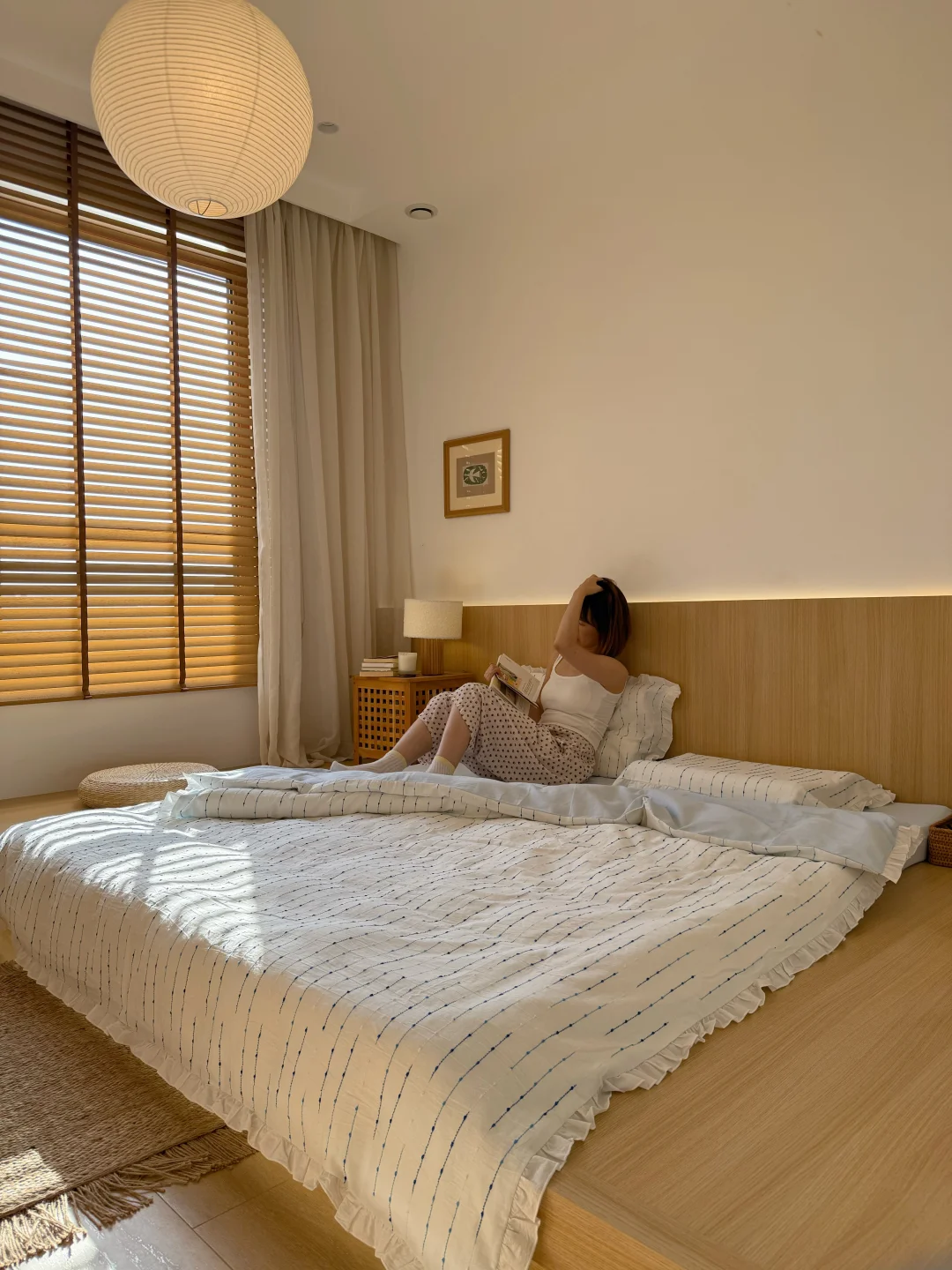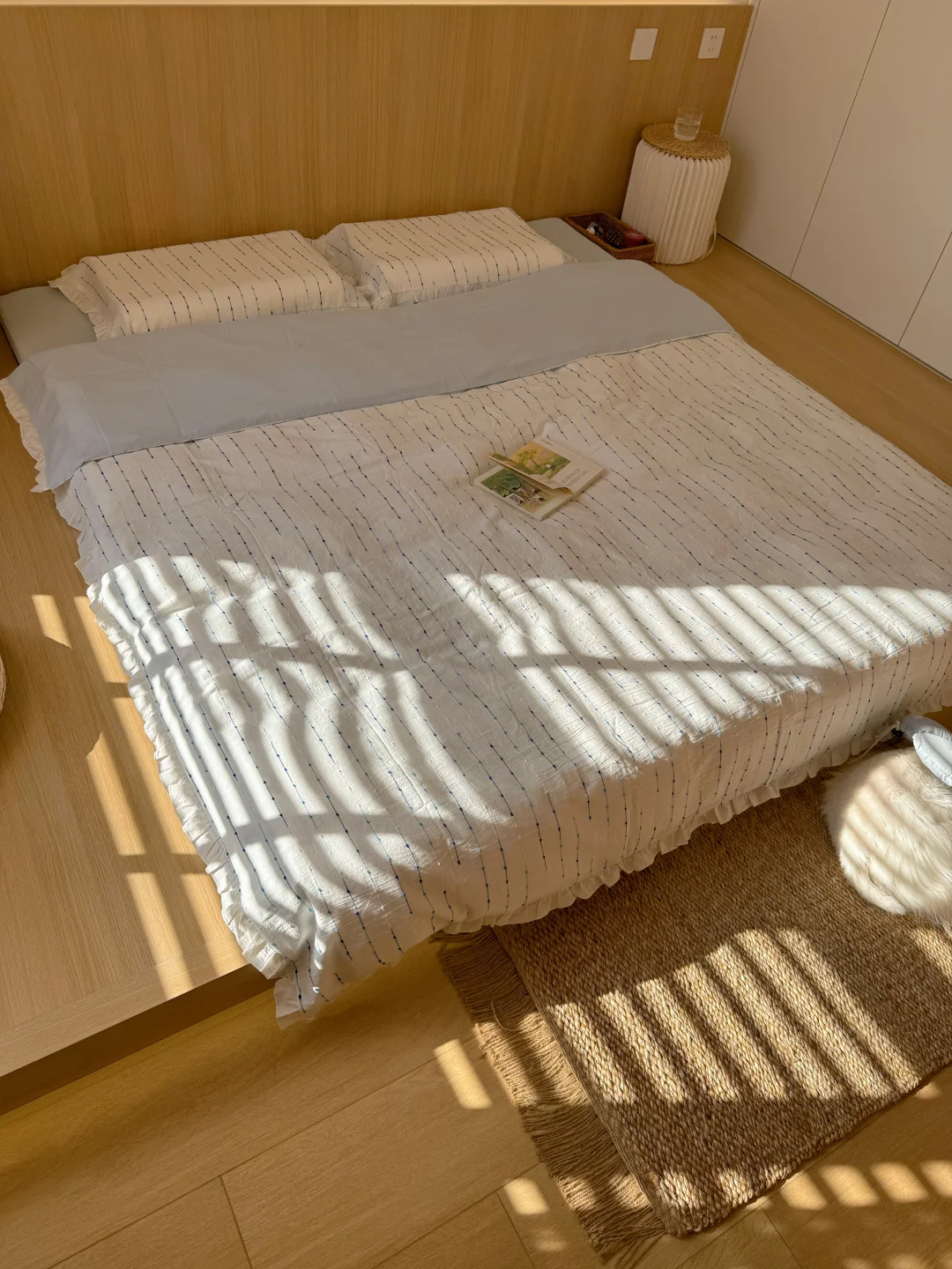 在家里,时间是慢的 空气是咖啡味道的 阳光是温柔的 被子是柔软的 纷扰的世界里 能有这98平的属于自己的栖息地 我很知足~
