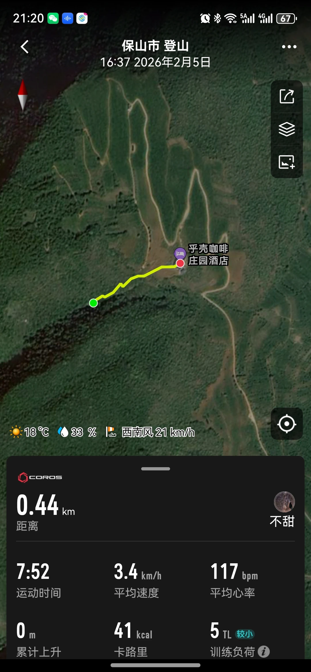 💡[黄金薯R]彩蛋:酒店后门还有一条mini“观鸟塘”路线,往返1公里,后半段是土路,路迹不明显。