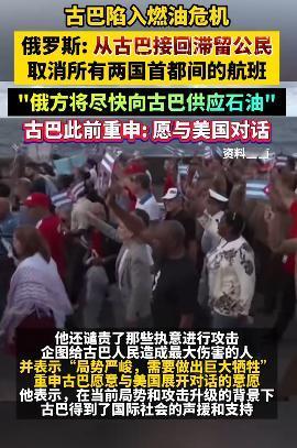 俄罗斯准备从古巴撤人了?这是啥情况? 难不成美国准备在古巴也开干了? 古巴这种小国,发展资源匮乏,一旦能源被锁死,那就基本没有戏了。 这一点和日本很像。 很多不知道什么物种的不明生物总认为古巴的今天是因为搞了社会主义的原因,搞了计划经济的原因,他们也不看看美国是如何对古巴的。 世界头号强国全面封锁古巴一个小国,能撑到现在已经很不错了。 如果古巴能有海地一样的国际环境,经济肯定早就起飞了。 中国人都知道柴米油盐酱醋茶,柴作为能源排在第一,发工资都叫发薪。 没有能源的古巴能怎么样呢? 没有中俄帮着撑着,早就成海地了。 海地可是资本主义,可是市场经济,可那里的人民在吃土。 对,就是字面意义上的吃土。 美国之所现在突然对古巴上强度,实际上是美国的新门罗主义战略的表现,美国现在要在美洲搞事情,要把美洲彻底变成自己的后花园。 点右上角关注我,我们一起去看这个魔幻的世界