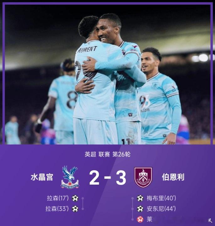 【近17轮首胜!伯恩利3-2逆转胜水晶宫】