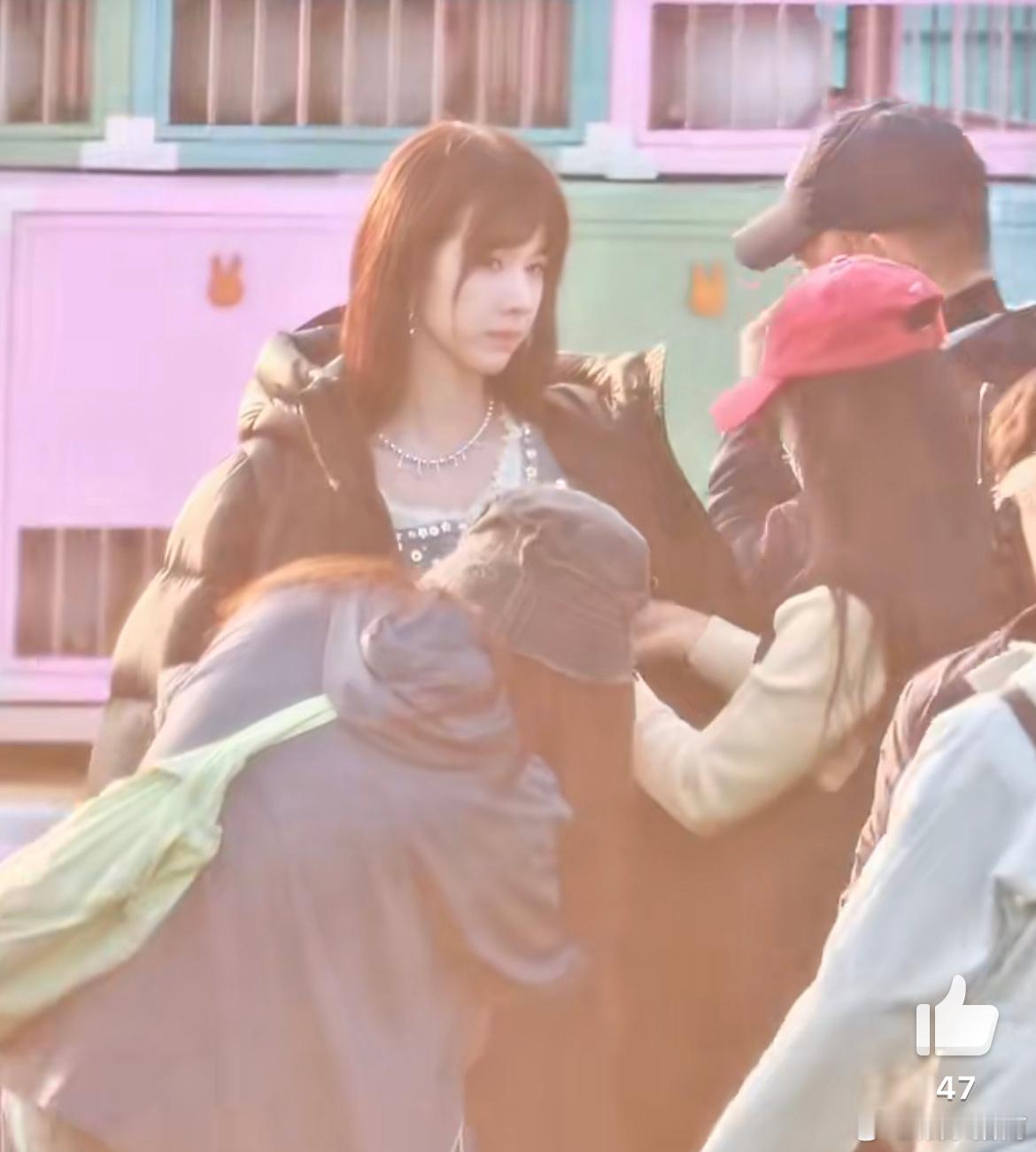 张天爱跟素人合影,胯真的好宽,大宅院似的