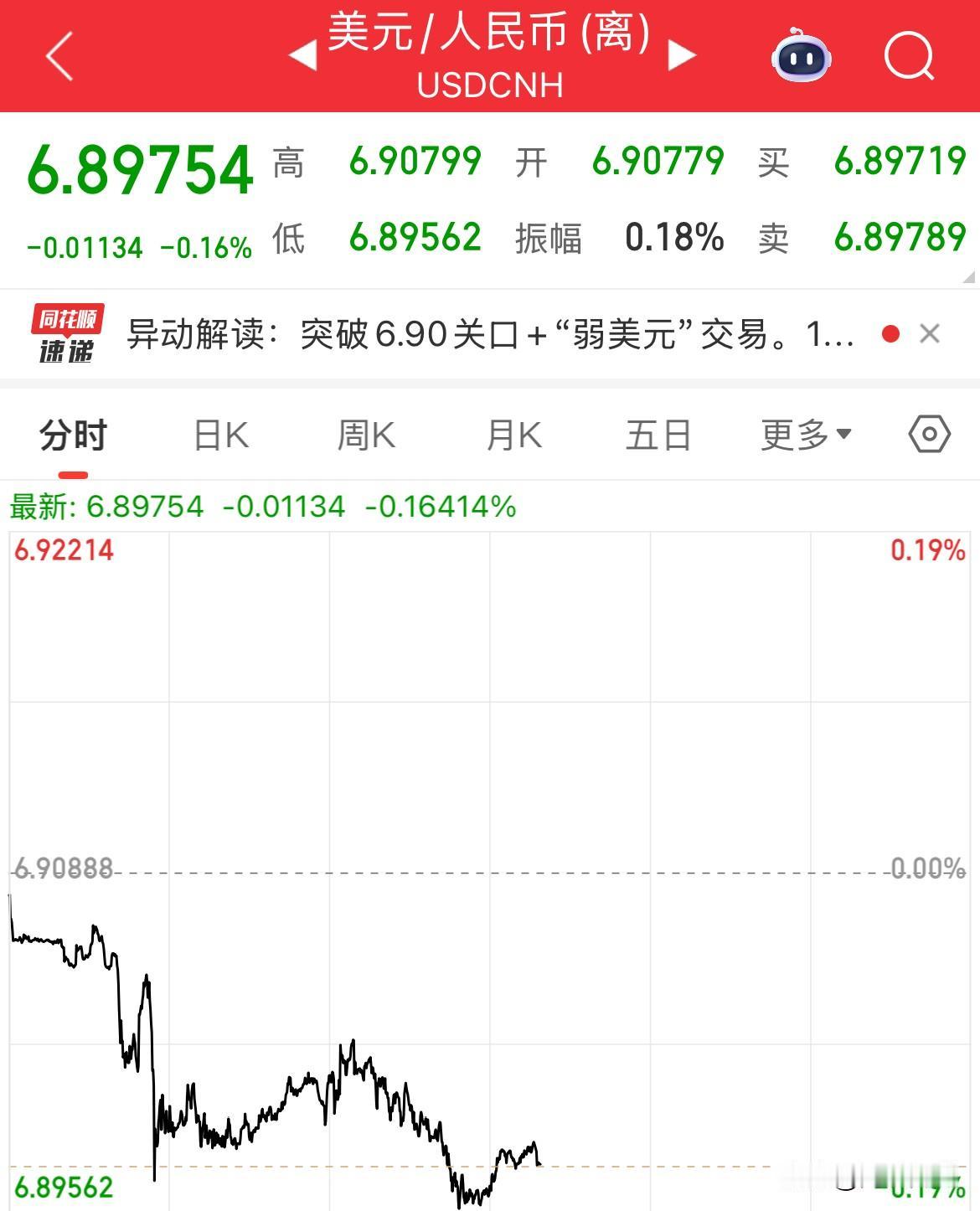 人民币破6.90关口,再迈上关键的一步,开年以来累计涨幅1.24%,从高位6.99565一路冲到6.89562 美元走弱,非美货币普遍走强,此外中美关系缓和,经济企稳,市场对人民币升值的预期增强, 利好进口等成本下降,出口企业结汇收益提升,但出口竞争力边际减弱,出口企业利润承压, 机构预期短期依然在6.85-7.05区间内震荡,预期是年底升值至6.7。