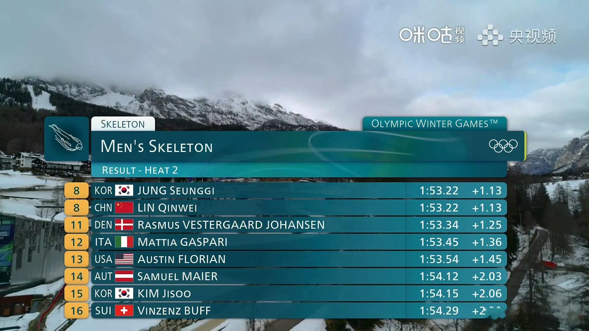 陈文浩钢架雪车暂列第4米兰冬奥会男子钢架雪车第二轮战罢!中国选手陈文浩以总成绩 1分52秒68暂列第4位,表现超稳!殷正、林勤炜总成绩 1分53秒22,并列第8,继续保持竞争力!第三、四轮较量将在2月14日凌晨打响,中国钢架雪车三将继续冲牌,加油!v观冬奥会全民聊冬奥