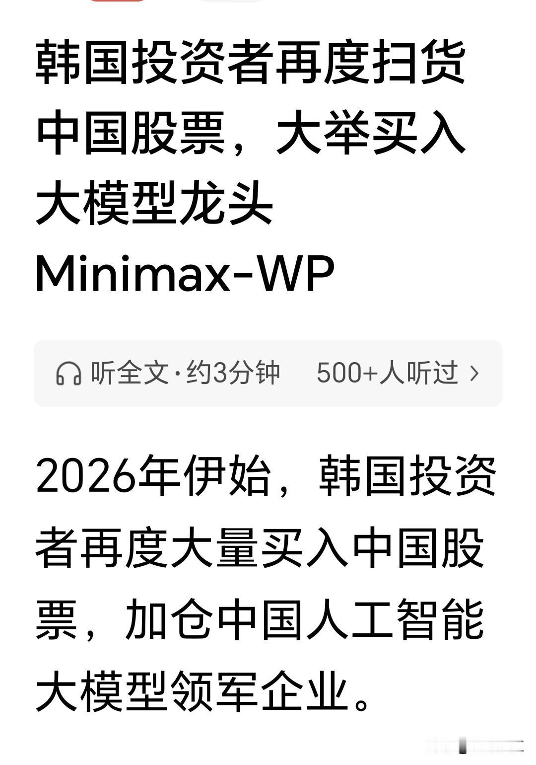韩国投资者这么牛批啊?韩国股市在李在明担任总统后到现在已经涨了很多,现在时不时创历史新高了。韩国投资者肯定是推动韩国股市不断创新高的主力军。因为韩国的半导体行业是很厉害的,所以相关行业的股票都涨得飞天了。现在韩国投资者把目光射到中国股市,投资中国股市(包括国内股市和港股)中的中国高科技产业。