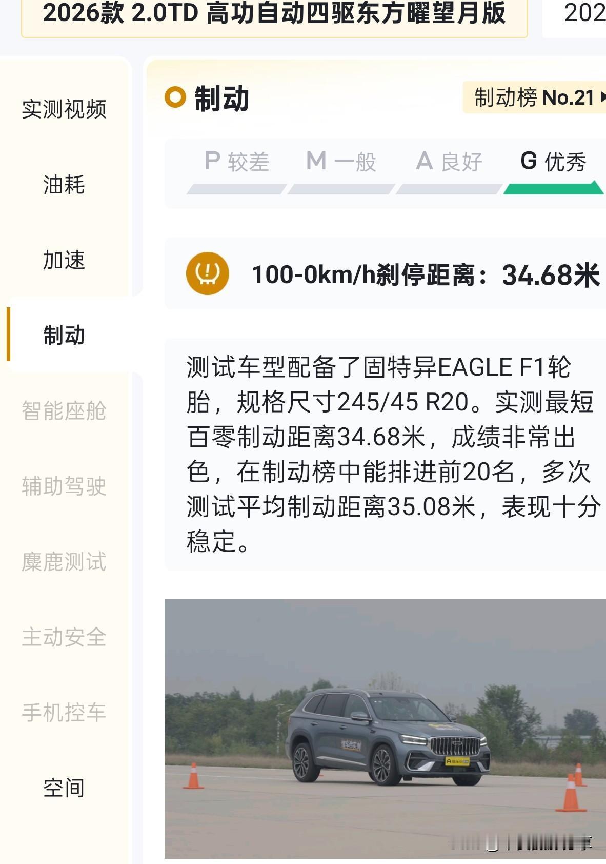 星越东方曜刹车成绩很优秀啊!懂车帝实测!吉利星越 极光银星越l 星越版 星越东方曜 星越l·东方曜 星越超红 星越l东方曜