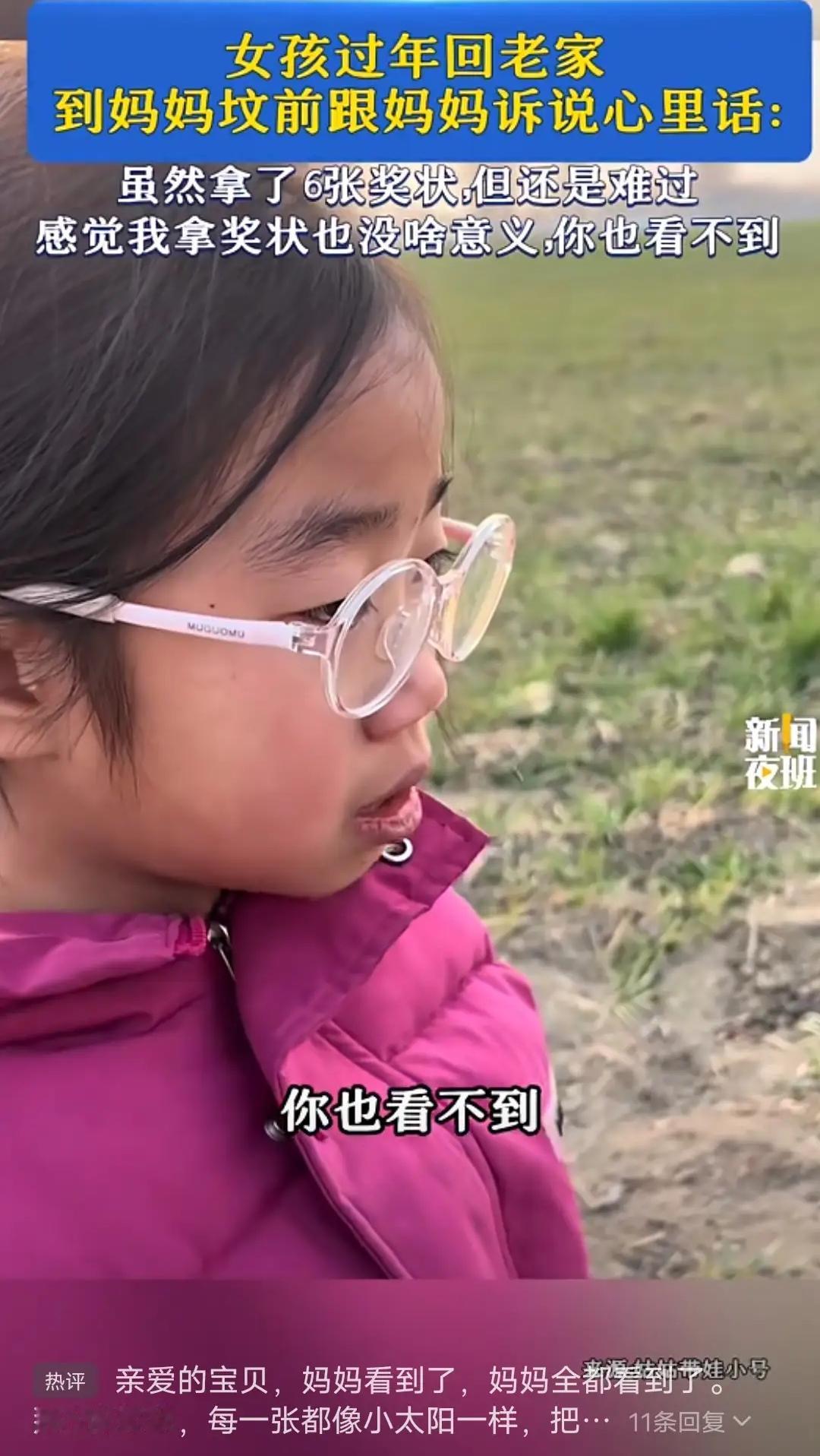 女孩回家过年到妈妈坟前说心里话六张奖状是成长的勋章,女孩在妈妈坟前的倾诉,藏着最深的思念与爱。这份跨越生死的牵挂,让人心疼又动容。愿她带着妈妈的期许,勇敢前行,未来闪闪发光。[赞][赞][赞] 祭拜已故妈妈 评论打卡任务