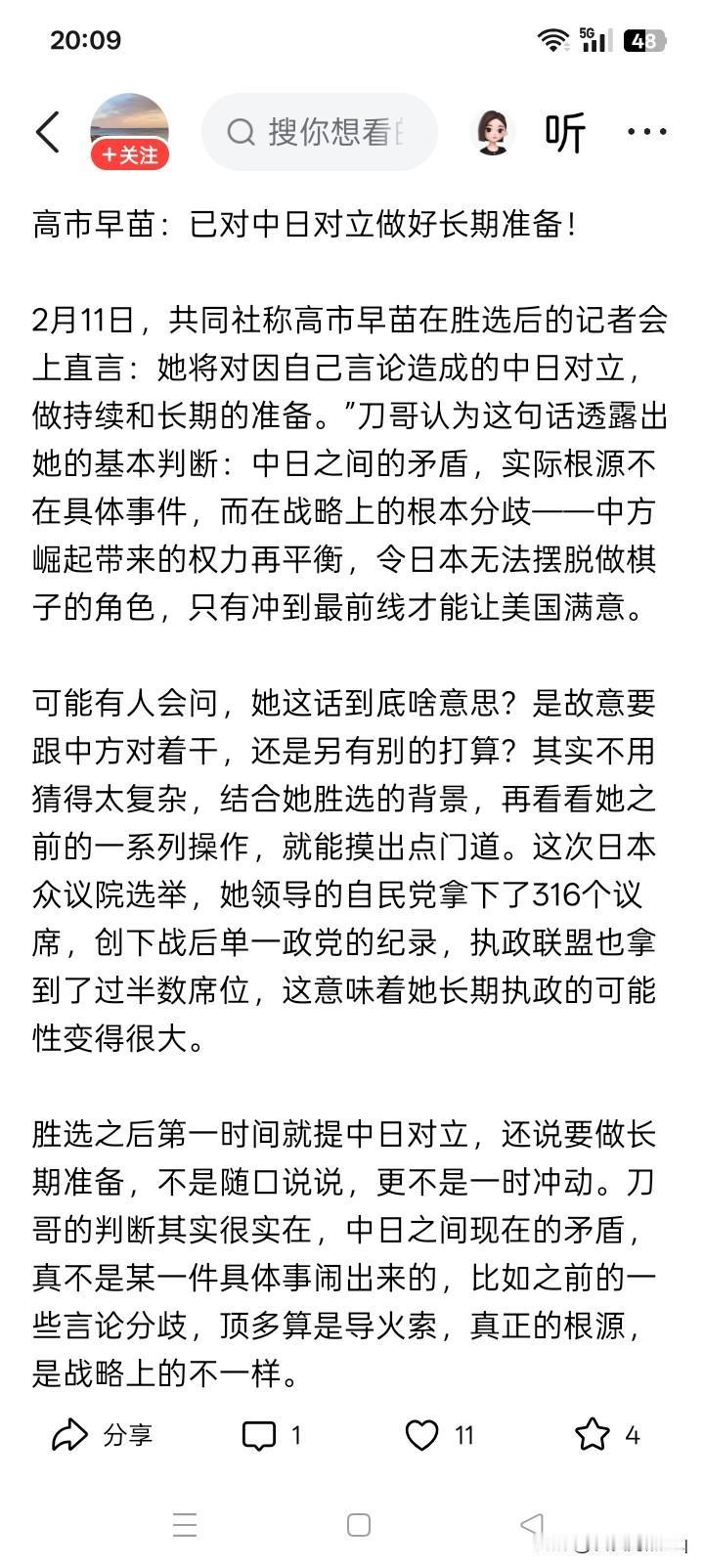 高市早苗对抗到底吗? 与美国的关系,近些年早已经是曲曲折折,不太乐观;与欧洲的关系好像也是错综复杂,横生枝节;现在,日本首相高市早苗也似乎公开挑衅,不用说,在这种情况下,与日本的关系似乎也绷紧了神经。 因此,可以说是重任在肩,不容半点马虎。特别是在现代的世界上,一个国家如果想要加快发展经济,提高民众的生活水平和生存环境,必须要有一个良好的国际环境。 但这实际上是一个地地道道,彻头彻尾的大众问题,估计只有从大局和全面考虑的人,才有可能很好的处理这个问题,而绝对不是从个人的好恶出发去考虑。