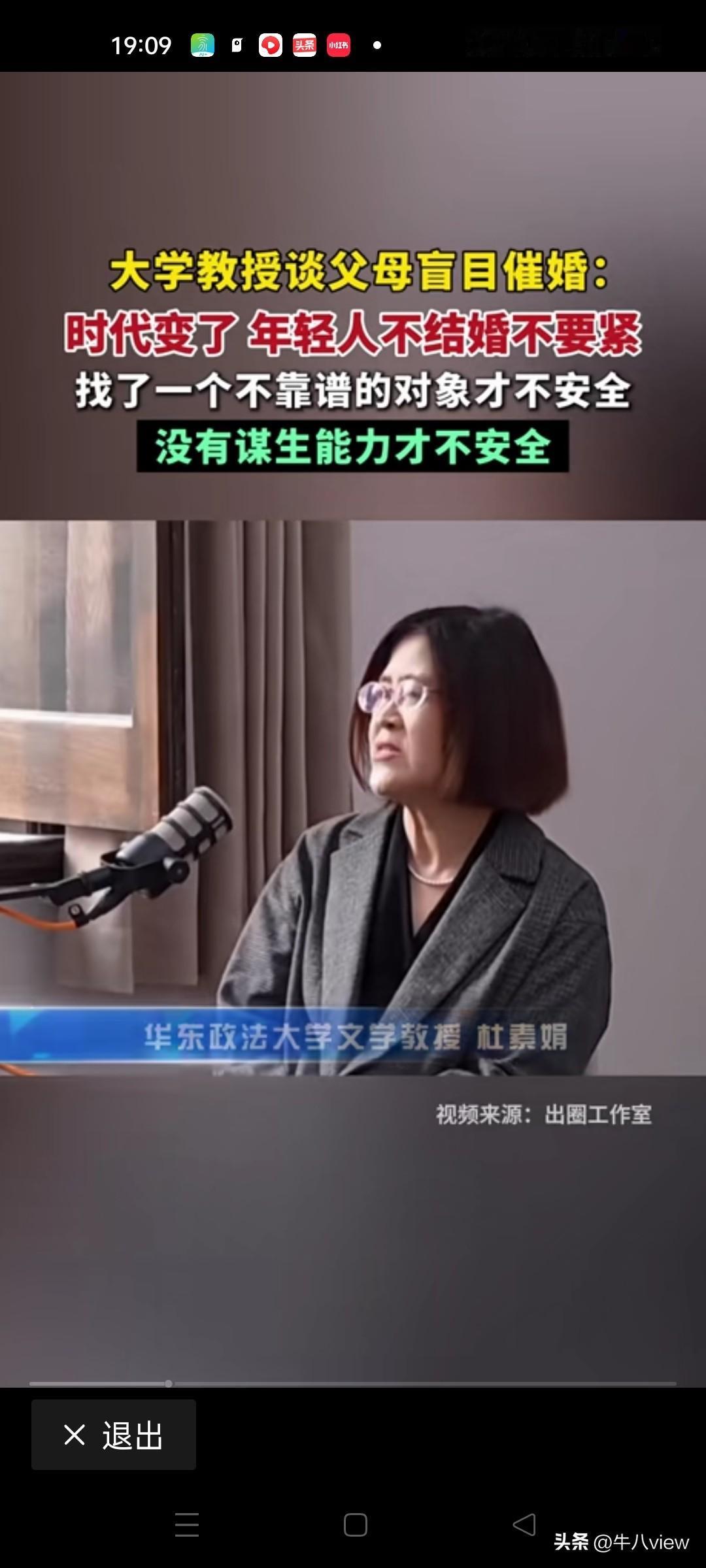 “年轻人不结婚不要紧,相反如果找到一个不靠谱的配偶才是不安全的,没有谋生能力才不安全” 。这是华东政法大学杜教授在接受采访谈及年轻人被家长催婚这一问题抛出的观点。 她说的这个观点我是非常认同的,当然我们能理解家长催婚的心情,毕竟男大当婚女大当嫁这是传统,人们总觉得成家立业应该把家成了再干事业,这种思想还停留在旧社会,但是现在一个男人如果没有一个正经的工作,没有能养起家的收入来源,试问有几个女子在相亲的时候不过问这些问题?显然是没有的。 但现在很多家长并没有意识到一旦娶一个不靠谱的媳妇或者嫁一个不靠谱的老公,对婚姻来说就是风险。至少双方都要有一个谋生的能力。当然也不排除有的没有谋生能力却也能依靠着别人生活一辈子的。 一定要明白,不幸的婚姻真的可以毁了一个人的斗志,我说的不幸不是丧偶,而是找了一个不靠谱的对象,把好好的日子过得鸡飞狗跳。 牛八当初也是相亲结婚的,说实话我是没有看上我老婆,但因为父母不停的催,到处托人介绍,结婚似乎成了非常大的一项任务,两年时间相了六七个女生,我都感觉我活着成了家里的累赘,为了结婚甚至把离婚的女人介绍给我认识。 现在的老婆就是这种不情不愿的状况下结婚的,我一结婚我才感觉到全家终于消停了,当然至于我过得幸福不幸福似乎对他们来说并不重要了,重要的是我结婚了,我们家没有打光棍的了。现在回头想想我的父母这一代人他们的思想就是这么固执,就是这么纯粹。 但如果是现在,或者以后,我的孩子成家的时候,如果没有喜欢的对象,我也不会去催婚,能找到情投意合的当然是最好,但如果是为了结婚而结婚,宁可单着慢慢找也没有必要催婚让他找一个不靠谱的人痛苦的过日子,婚姻是为了幸福,如果没能超越单身的幸福结婚又有什么意义呢! 大家觉得呢?同意这个观点吗? 条友这一周 分享我这周有趣的事: