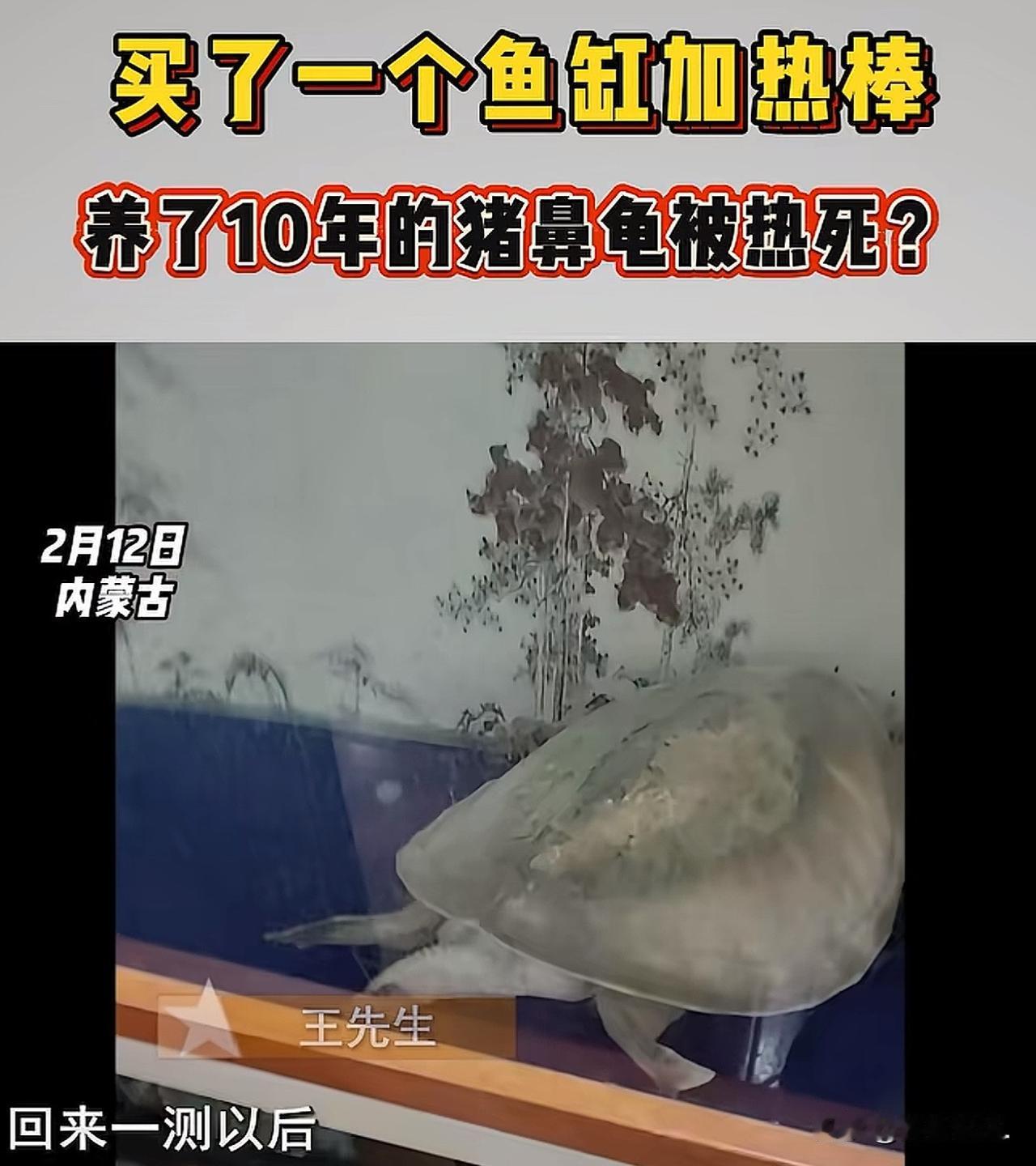 内蒙古,男子回到家里,发现自己养了10年的猪鼻子龟噶了。原来,半年前在网上买的鱼缸加热棒出了问题,活活把猪鼻子龟烫死了。这只猪鼻子龟市场价已经达到了2万多元,光电费每月就要100多元。男子找到商家讨要说法,要求商家承担赔偿。商家直觉拒绝了,只说让男子把电热棒邮寄回去,他们去检测到底是不是电热棒出了问题。男子不干了,表示可以亲自过去,请第三方进行监测,如果是质量问题,商家就要赔偿他的损失和路费!可还是被商家拒绝了。男子咽不下这口气,直接找来媒体曝光此事,让网友给评评理。 王先生向记者讲述了一件最近发生的糟心事。 工作之余,他养了一只猪鼻龟,这只小宠物已经陪伴他走过了十多个寒来暑往。 平日里,他心里有什么烦心事、不开心的事,都会对着小乌龟念叨几句,久而久之,早已把它当成了家人一样珍视,满心以为这只龟能一直陪伴在自己身边。 可谁也没有想到,意外毫无征兆地降临,陪伴他十年的爱龟竟被活活烫死,每当想起这件事,王先生都心疼不已。 半年前,他在天猫森森专卖店,花145元买了一根鱼缸加热棒,专门用来给心爱的猪鼻龟控温。 猪鼻龟是热带龟,水温不能低于28℃,不然就会不进食、容易生病,所以王先生一直把温度设定在31.5℃,这款加热棒宣传有缺水断电、超温保护,正常到温度就会自动停止加热,他用了一直很放心,觉得这下爱龟总算有了安全保障。 可今年1月份,意外突然发生了。王先生一推开家门,习惯性地去看鱼缸,眼前的一幕让他瞬间僵在原地,养了10年的猪鼻龟一动不动地浮在水里,鱼缸里的水烫得吓人。 他心里咯噔一下,慌慌张张拿来温度计一测,水温竟然快到50℃,但加热棒屏幕上还显示29.1℃,依旧在疯狂加热,说好的超温保护完全失灵,形同虚设!那一刻,王先生只觉得手脚冰凉,不敢相信眼前的一切。 看着被活活烫死的爱龟,王先生心痛又愤怒,他认定是加热棒质量不合格,向商家讨要说法。 可双方一沟通,矛盾立刻就爆发了。 商家只让王先生把加热棒寄回去,由他们自己检测,王先生心里又气又无奈,根本不能接受:自己寄回去,商家说没问题就没问题,这太不公平了。 他提出双方一起找第三方权威机构当面检测,约定好如果产品没问题,所有费用他自己承担,如果是质量问题,商家就要赔偿他的损失和路费,可这个合理的要求,被商家直接拒绝。 王先生咽不下这口气,找来媒体曝光此事。 王先生告诉记者,自己这只龟市场价近2万元,10年里他投入了无数心血,每个月光电费就要花100多元,他要求商家赔偿自己的损失。 记者了解到情况后,发现这家店发货地在江苏,生产厂家在浙江舟山,负责退货的人只收发货物,不做检测,而检测的总部早已放假,根本没人处理。 商家客服也只是敷衍,表示已经反馈厂家,要等到年后再说。 此事曝光后,网友炸了:你用森森的加热棒不就早晚出问题吗,舍得买那么贵的猪鼻龟 ,舍不得用个好点的加热棒?认真的吗 ,你但凡用个伊罕或者圣太科光特亿都行啊!而且就算有超温保护,你也得弄个温控探头吧,不怕一万,就怕万一 ,这点意识都没有吗?还养了十多年! 曾经用过10几根森森的加热棒,基本上都是基本款,一根都没有出现过问题,加热棒这个东西怎么说呢,我理解都是小家电,而且保有量实在太大了,便宜也好,无论多贵也好,重要的鱼加个温控吧! 《民法典》第1203条规定:因产品存在缺陷造成他人损害的,被侵权人可以向产品的生产者请求赔偿,也可以向产品的销售者请求赔偿。 本案中加热棒未实现宣传的超温保护,失控持续加热致宠物死亡,已构成产品缺陷。 王先生既可以向天猫店铺索赔,也可以向生产厂家索赔,商家无权仅要求寄回自检而拒绝第三方公正检测。 平台已介入,后续可通过调解或诉讼,按实际财产损失主张赔偿。