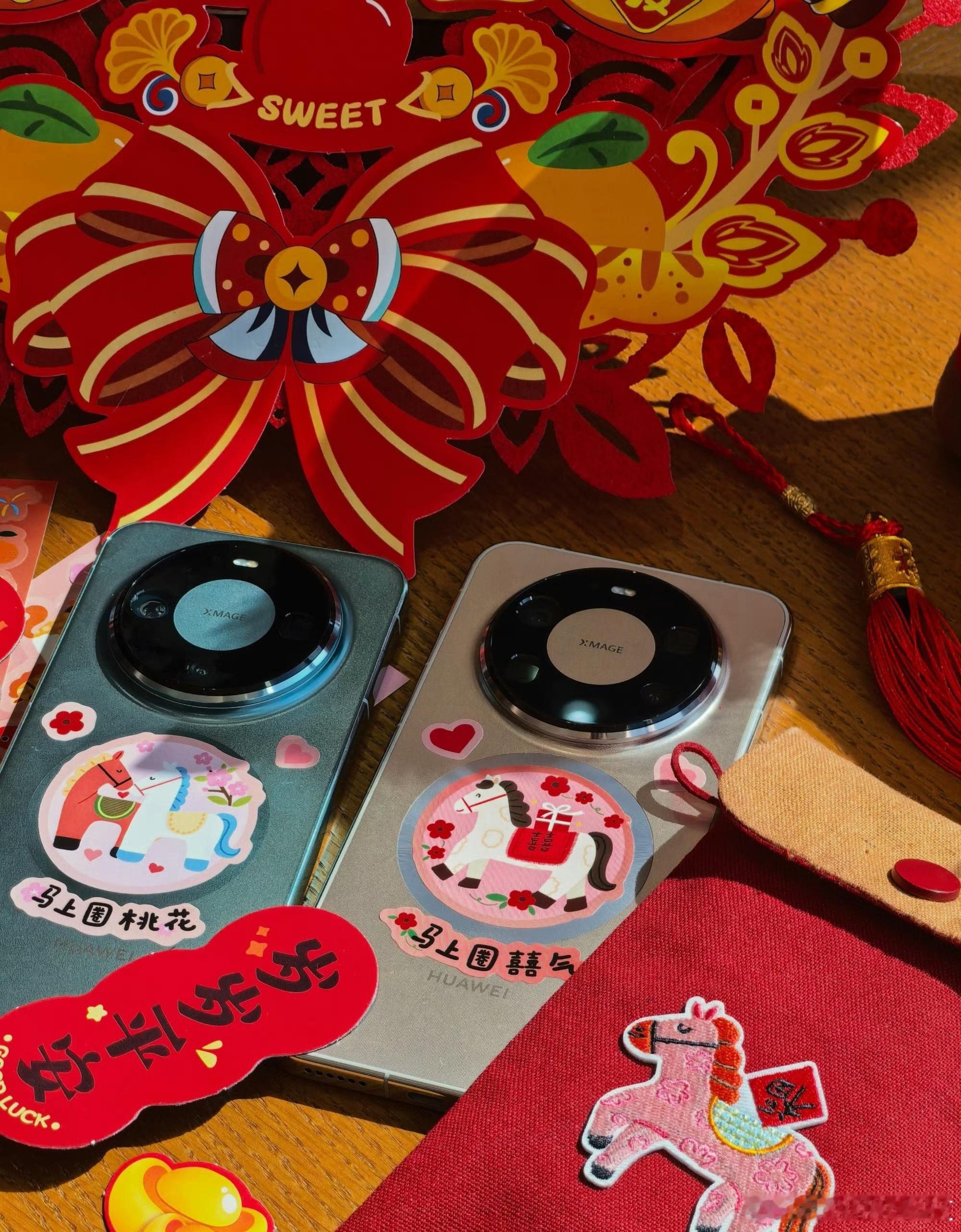快过年了,给我的手机也装扮一下!红色小马贴纸配上磁吸支架,马年帅机这不就来了吗