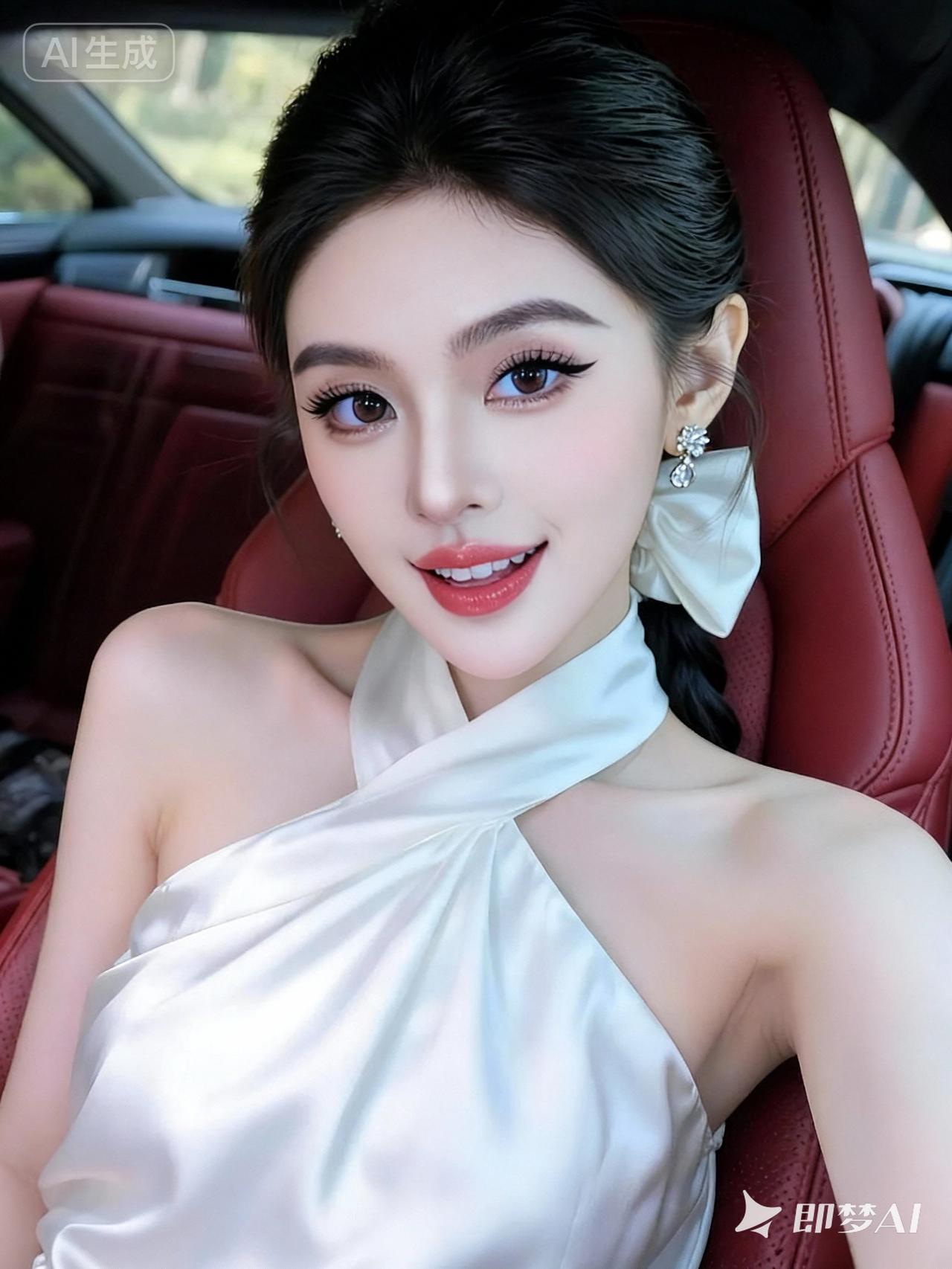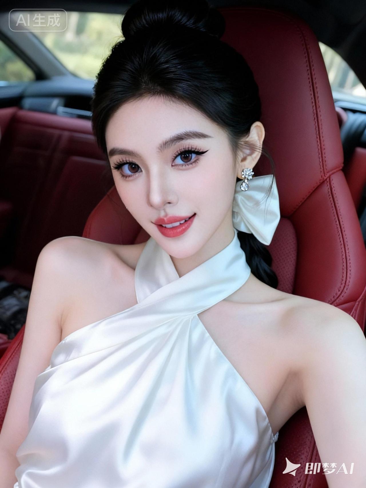 一位年轻漂亮的绝色佳人,皮肤白的发光发亮,真丝一样柔滑,乳白色丝绸雪纺薄款印花飘