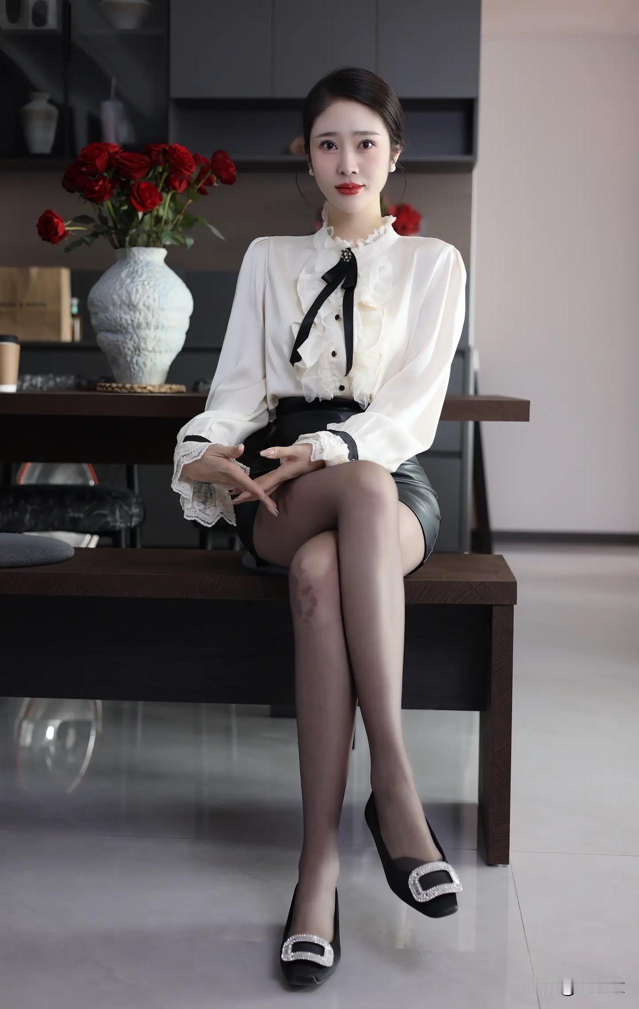 优雅白领风穿搭,红玫瑰与白衬衫的完美搭配,尽显时尚魅力!🌹✨