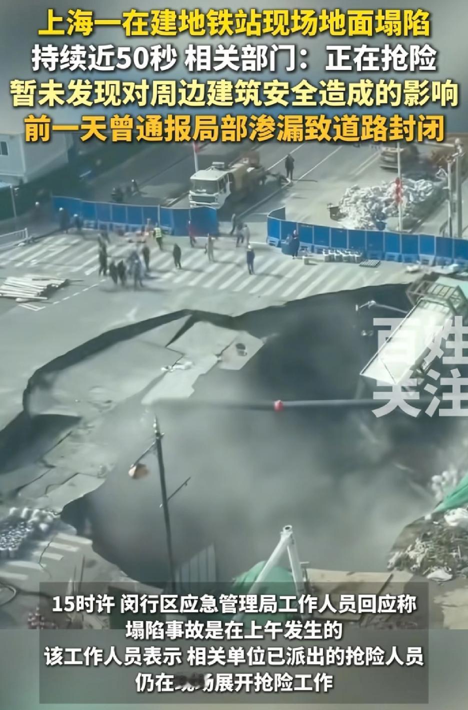 上海一在建地铁站的地面就这样在大家面前塌陷了,到底什么原因我大概猜测了以下几点: 1.偷工减料导致的豆腐渣工程 2.春节返乡的人太多了,走来走去把地面踩塌了 3.可能是以前某本人挖地下隧道引发的后遗症 4.上海本身地质比较松软的原因。 就是不知道这几点哪个可能性最大。