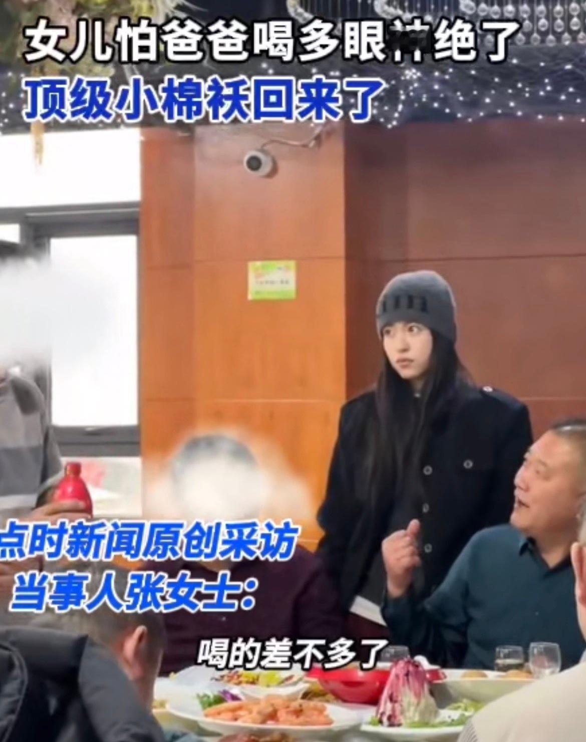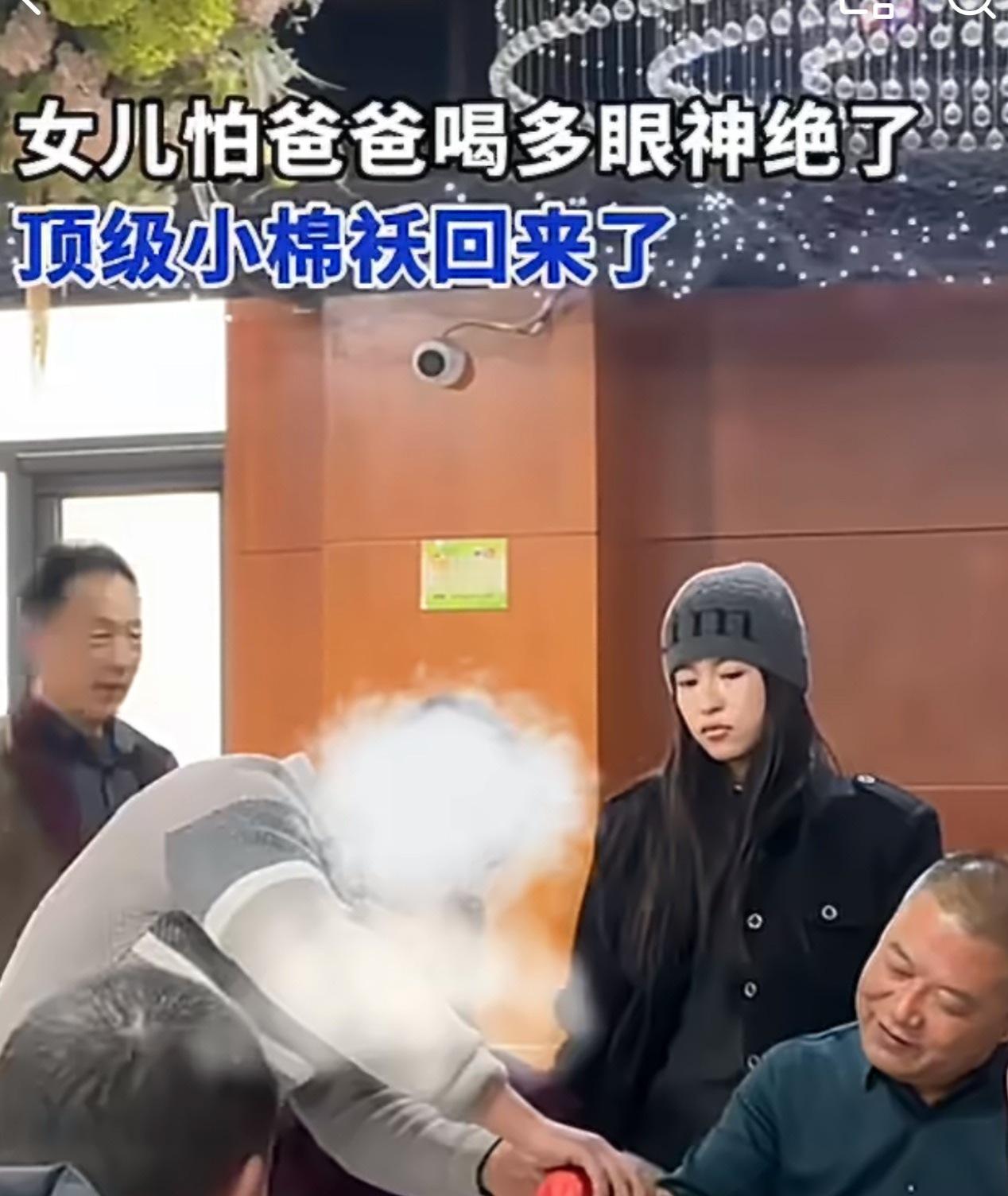 爸爸被劝酒女儿站身后霸气挡酒 这真的是又贴心又顶级的小棉袄了,眼神又凶又可爱,最后还把白酒换成了茶水,护爸狂魔了属于是。感觉他们的父女关系应该很好很温馨。