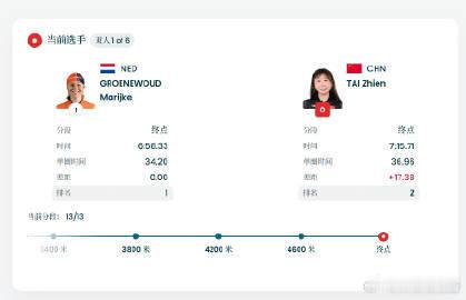 米兰冬奥会速度滑冰女子5000米项目,🇨🇳中国19岁选手第一组出发顺利完成比赛,她的成绩是:7:15.71