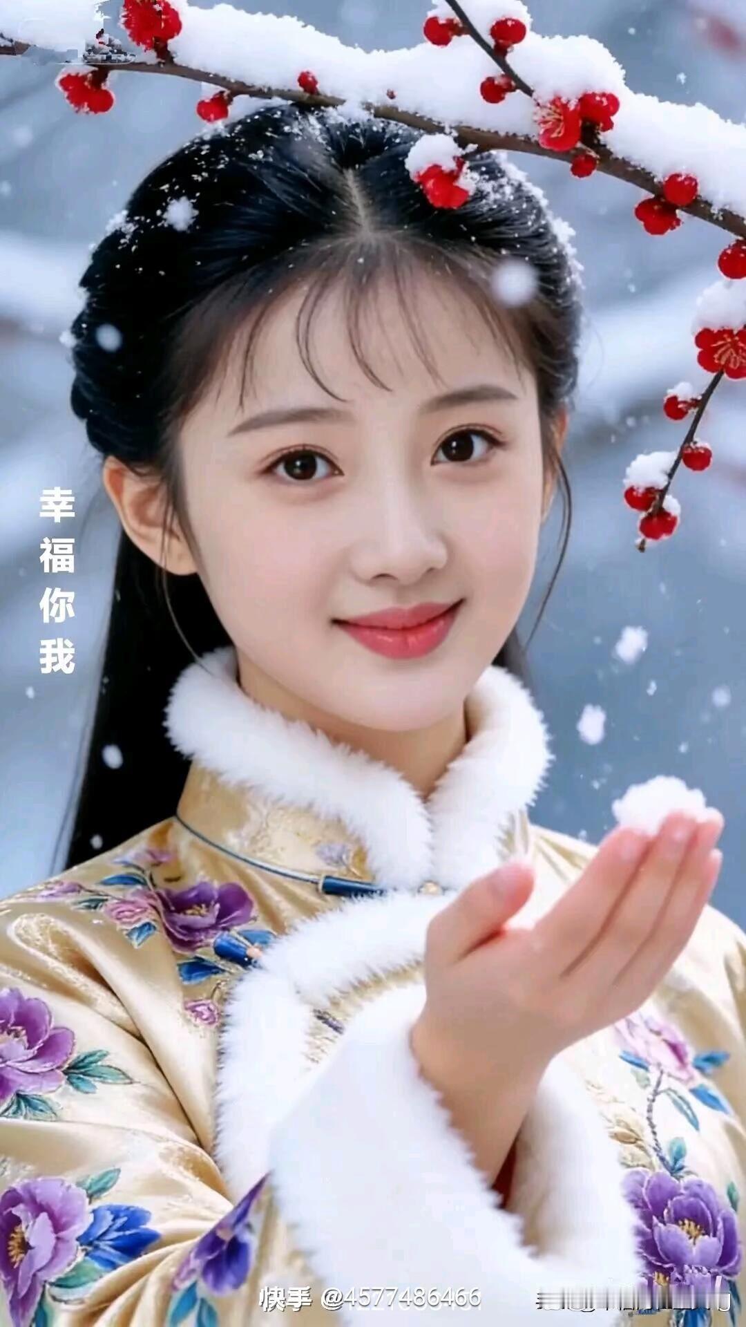 冬日暖阳下,红梅映笑颜,幸福你我