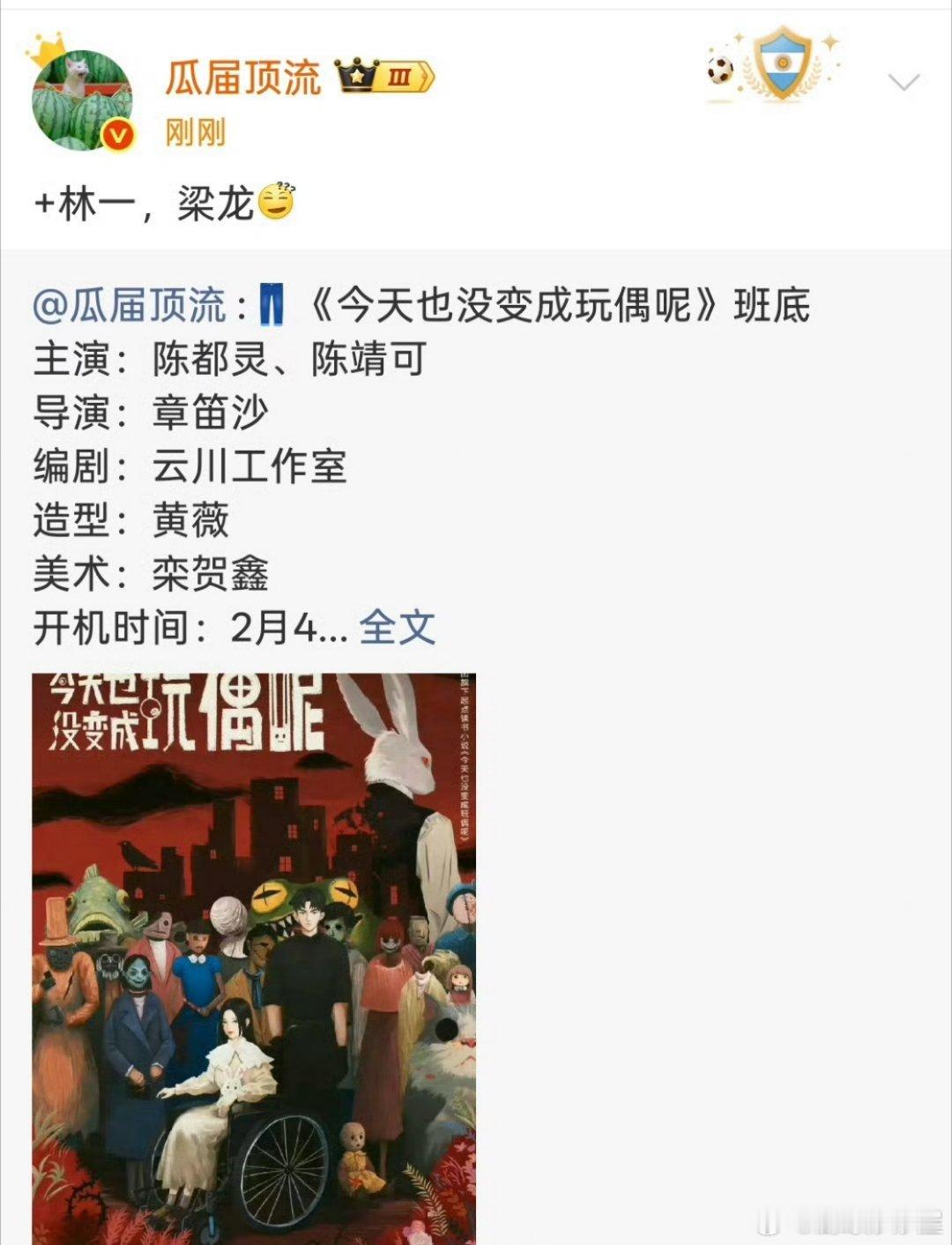 《今天也没变成玩偶呢》阵容+林一,梁龙?林一很合适兔子检察官吧,个子高,腿又长又直梁龙演哪个?