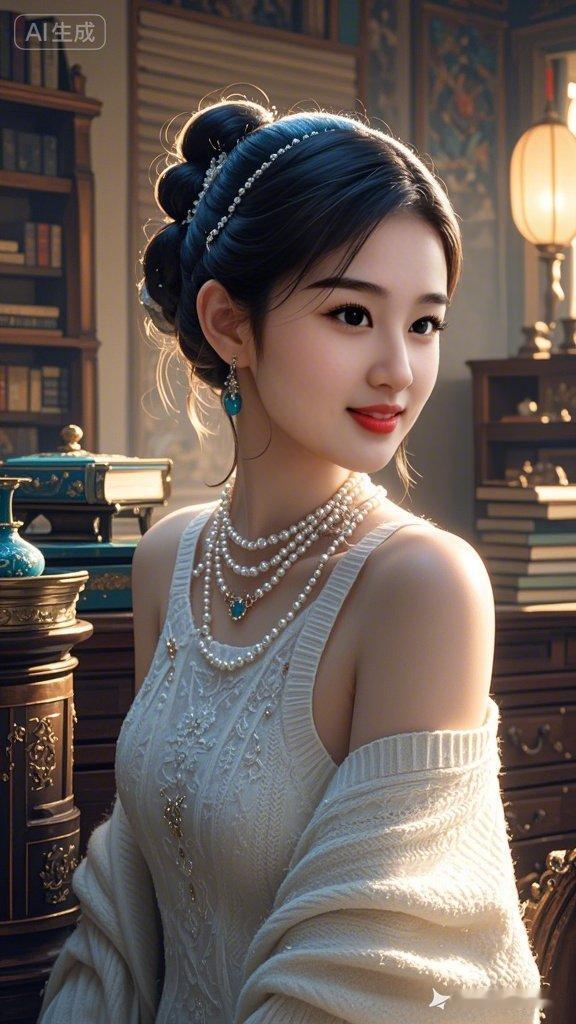 香妃美人清丽脱俗浅笑嫣然,空灵仙气氛围感拉满。回眸倾城,发丝飘逸,明眸精致,白无袖露肩旗袍勾勒曲线,闺房丁达尔光效映珠宝光泽。