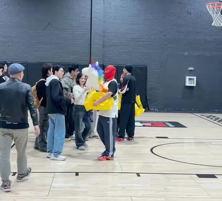 张天爱跟素人合影,胯真的好宽,大宅院似的