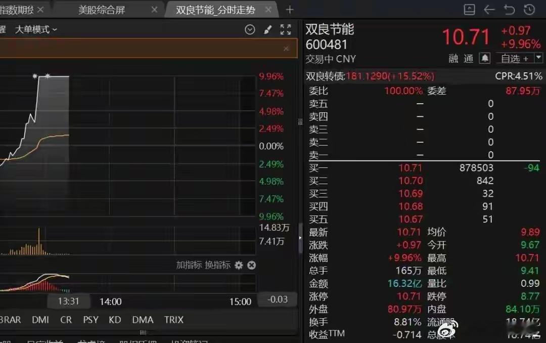 2月12日下午,双良节能(600481)快速直线涨停,最高封单金额高达11亿元,