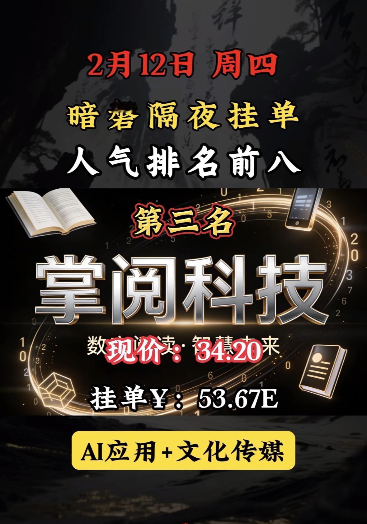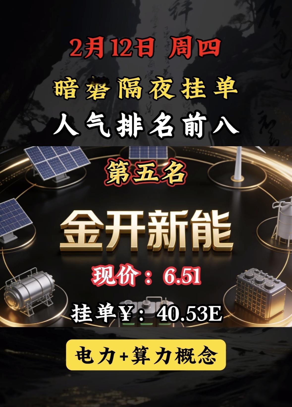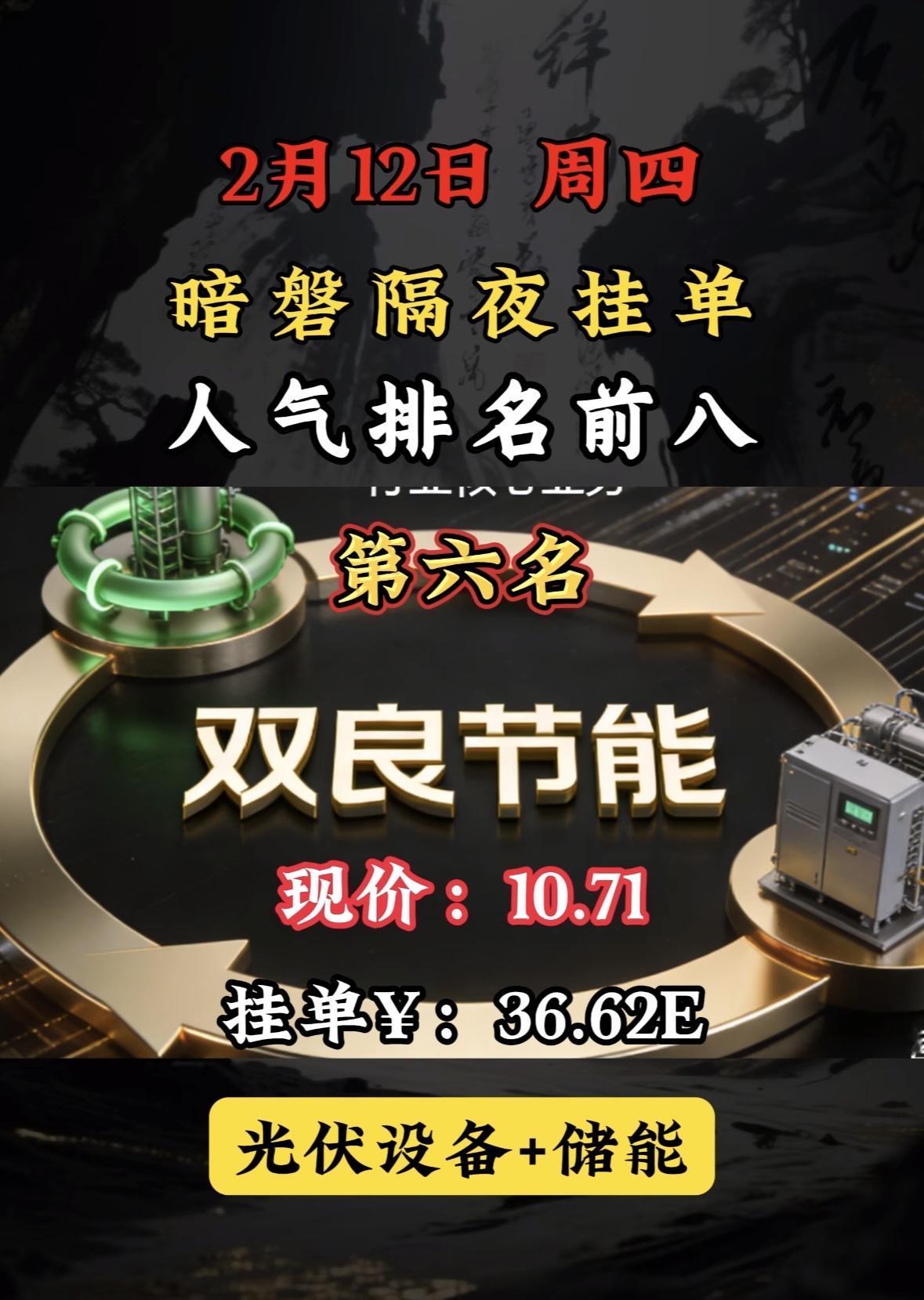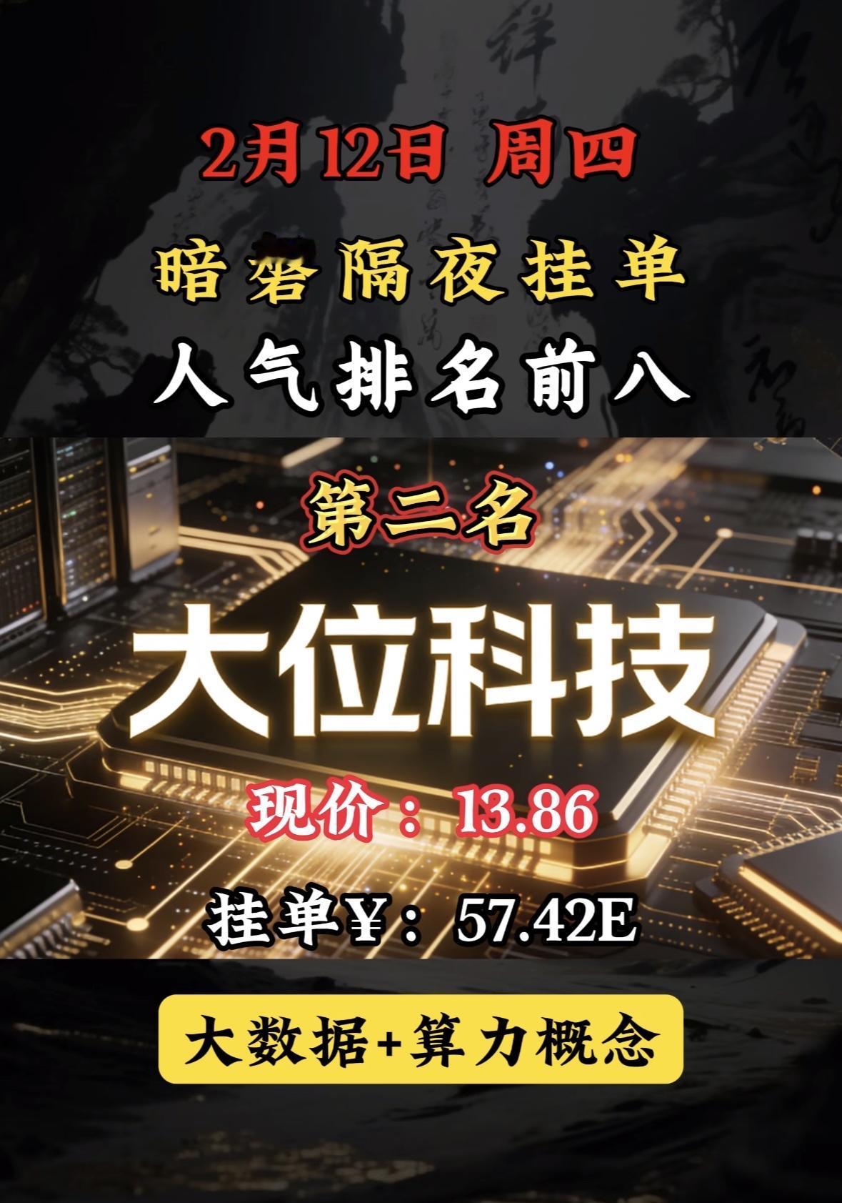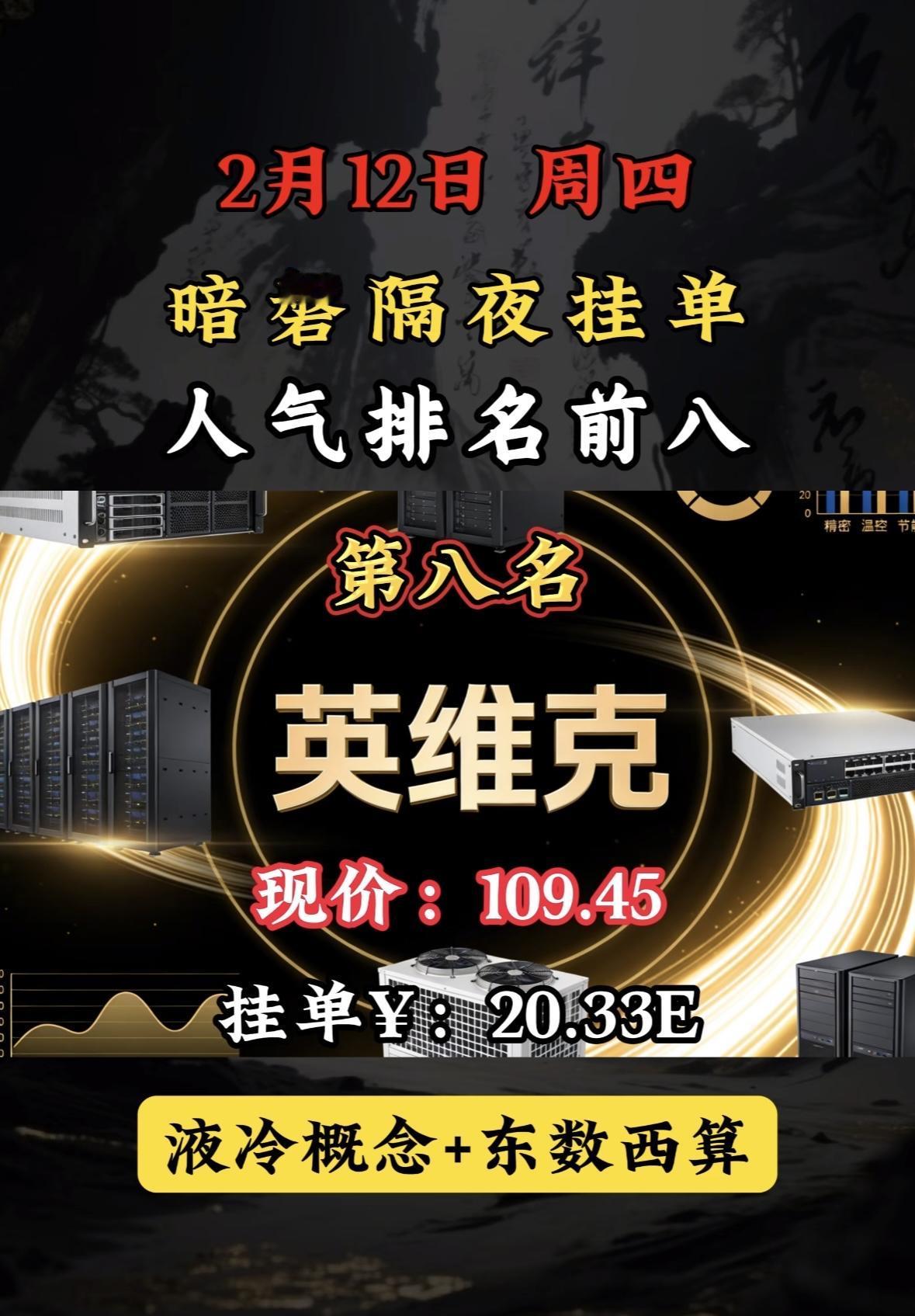 2月13日暗香隔夜挂单,人气排行前八。 暗磐隔夜挂单榜首利欧股份,AI智能与液冷双概念加持,市场热度飙升。