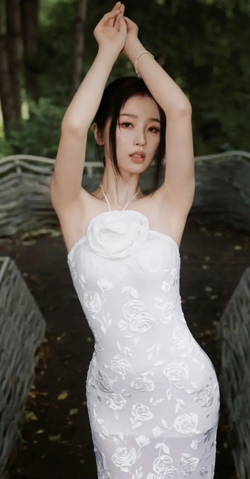 张天爱跟素人合影,胯真的好宽,大宅院似的