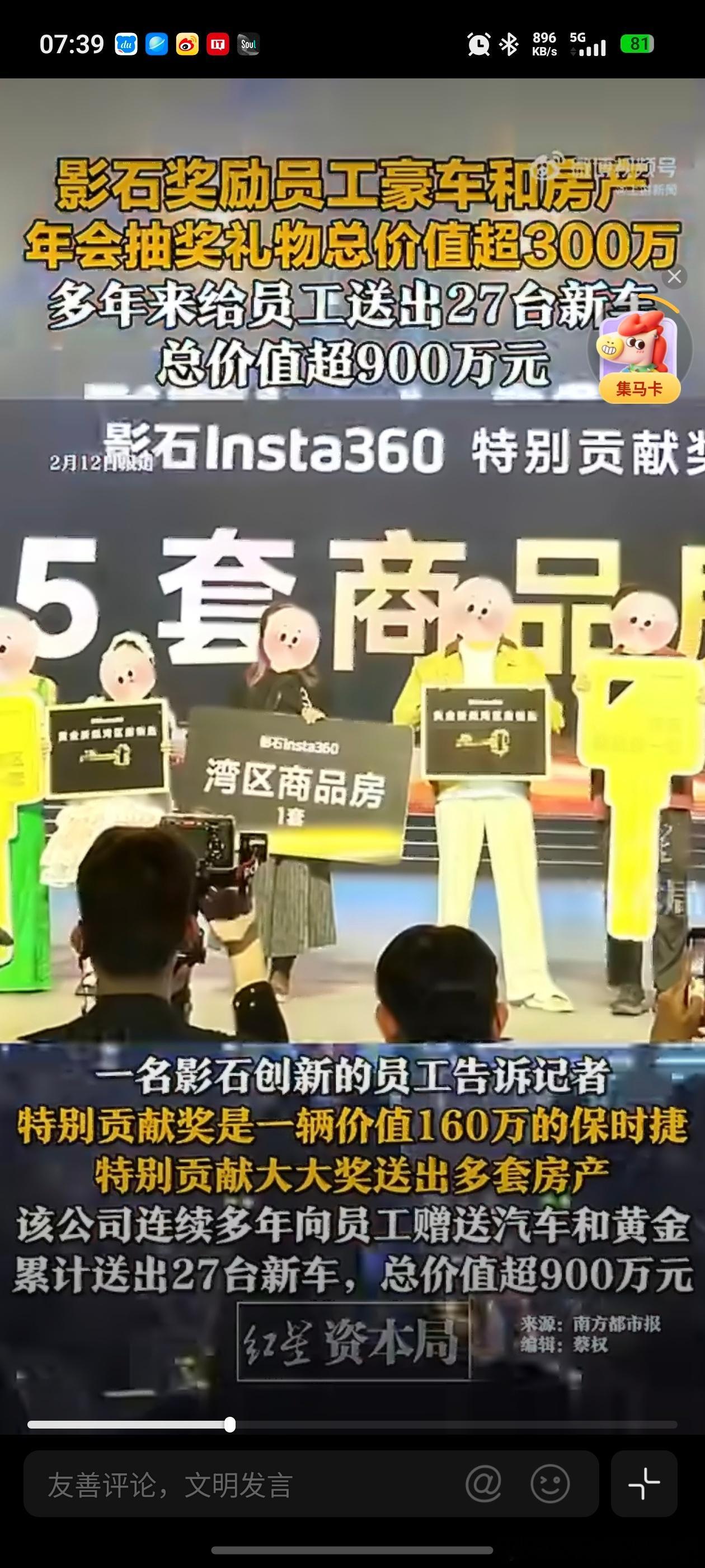 LH手机科技爱好者 又是羡慕别人公司的时候了,影视公司年会,真有员工拿到保时捷了。这个应该可以卖的吧?留着自己开也行,毕竟是豪华品牌。如果是我的话,我可能就卖掉换钱,再买一辆其它车,哈哈。影石公司年会一员工获保时捷