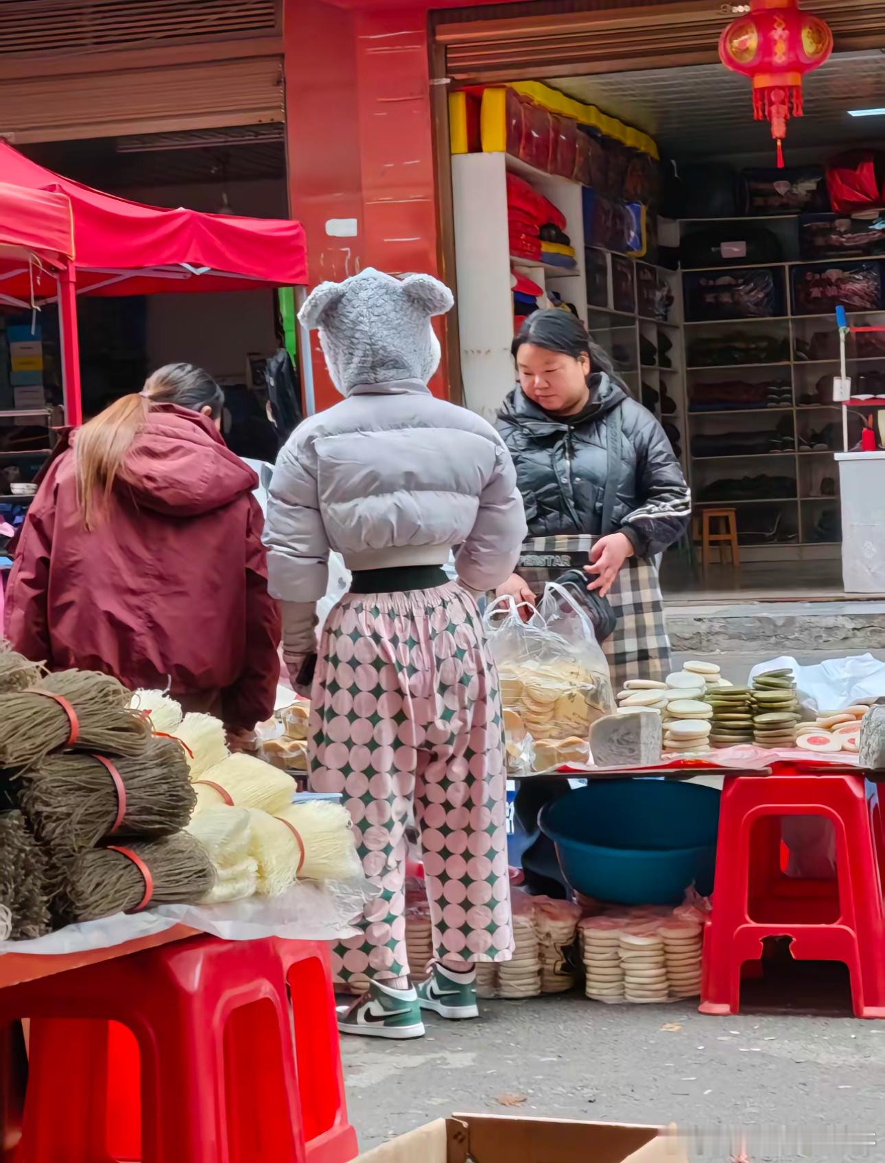 张天爱跟素人合影,胯真的好宽,大宅院似的
