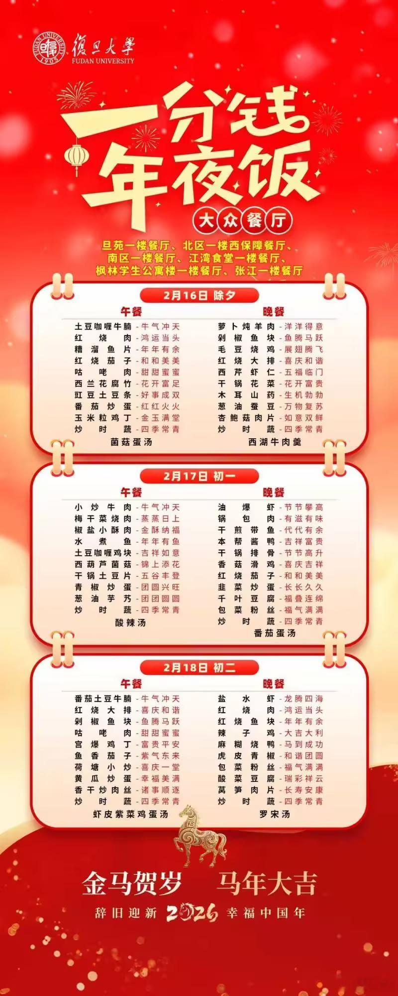 多所高校推出1分钱年夜饭春节临近,仍有部分学生因科研任务、学业备考等原因选择留校