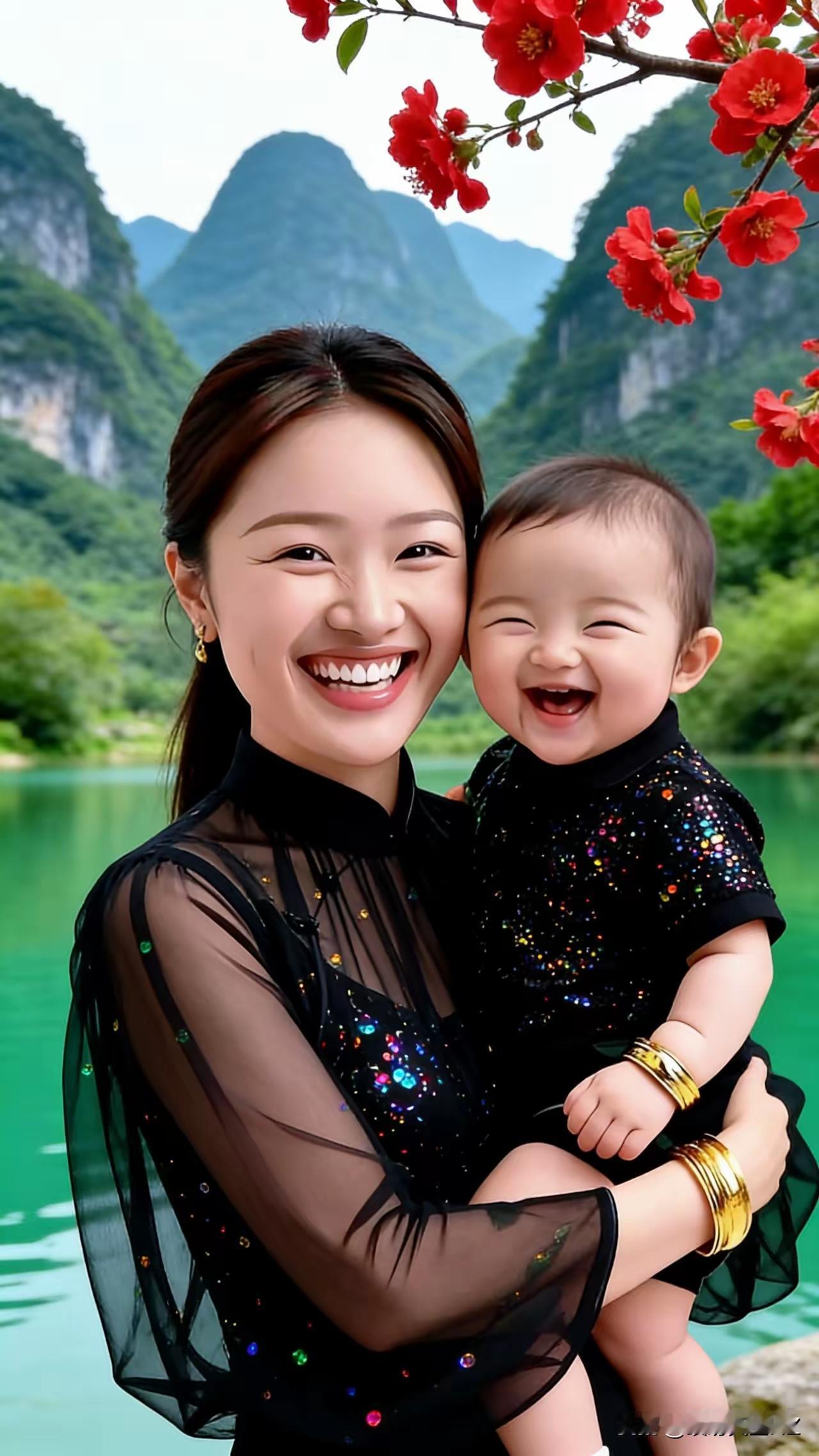 母子俩的快乐时光,山间美景作背景,幸福满满!🌸👩‍👧‍👦