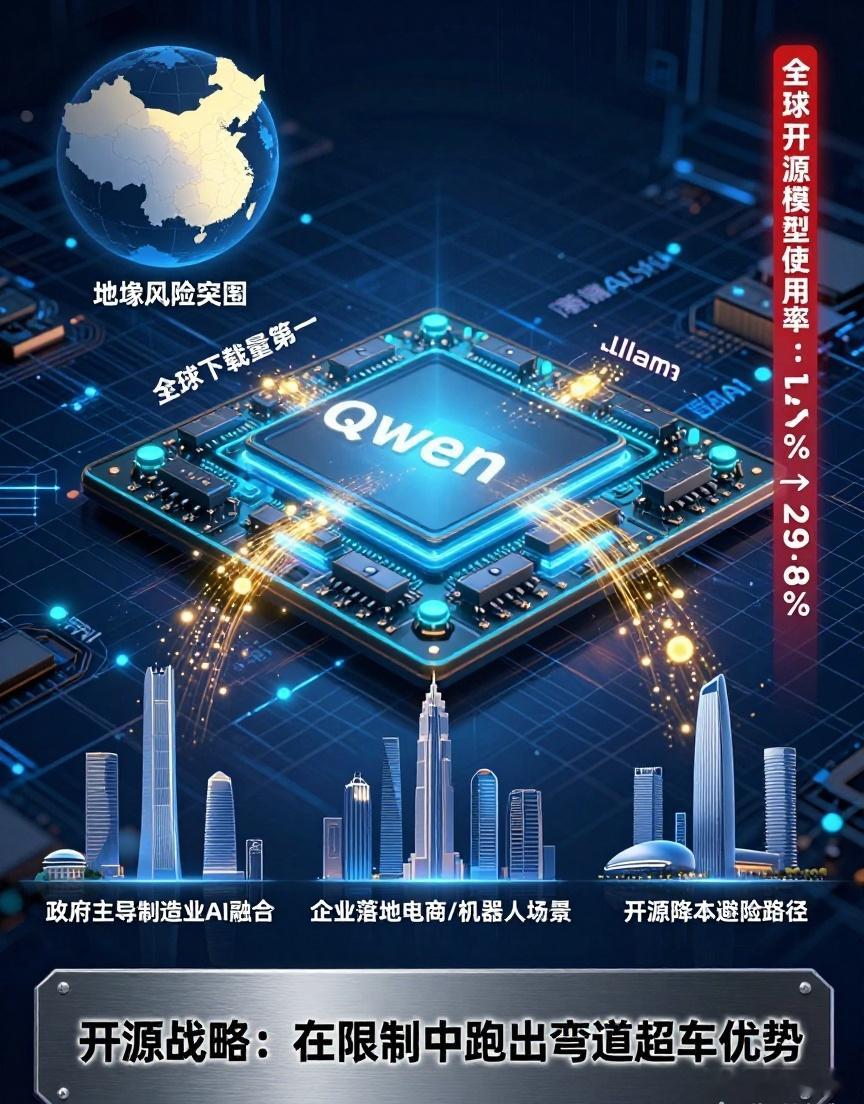 芯片受限下,中国AI另辟蹊径:走开源路突围。千问模型取代Llama成Hugging Face下载量第一,智谱、稀宇科技港交所上市潮涌现,开源模型全球使用率从1.2%飙升至近30%。虽顶尖大模型性能或逊于美,但行业应用落地极快——政府力推制造业AI融合,企业将模型嵌入电商、机器人等场景。开源不仅降成本、避地缘风险,更让中国在限制中跑出独特优势,这路径,藏着弯道超车的智慧。用ai复活亲人已形成产业链