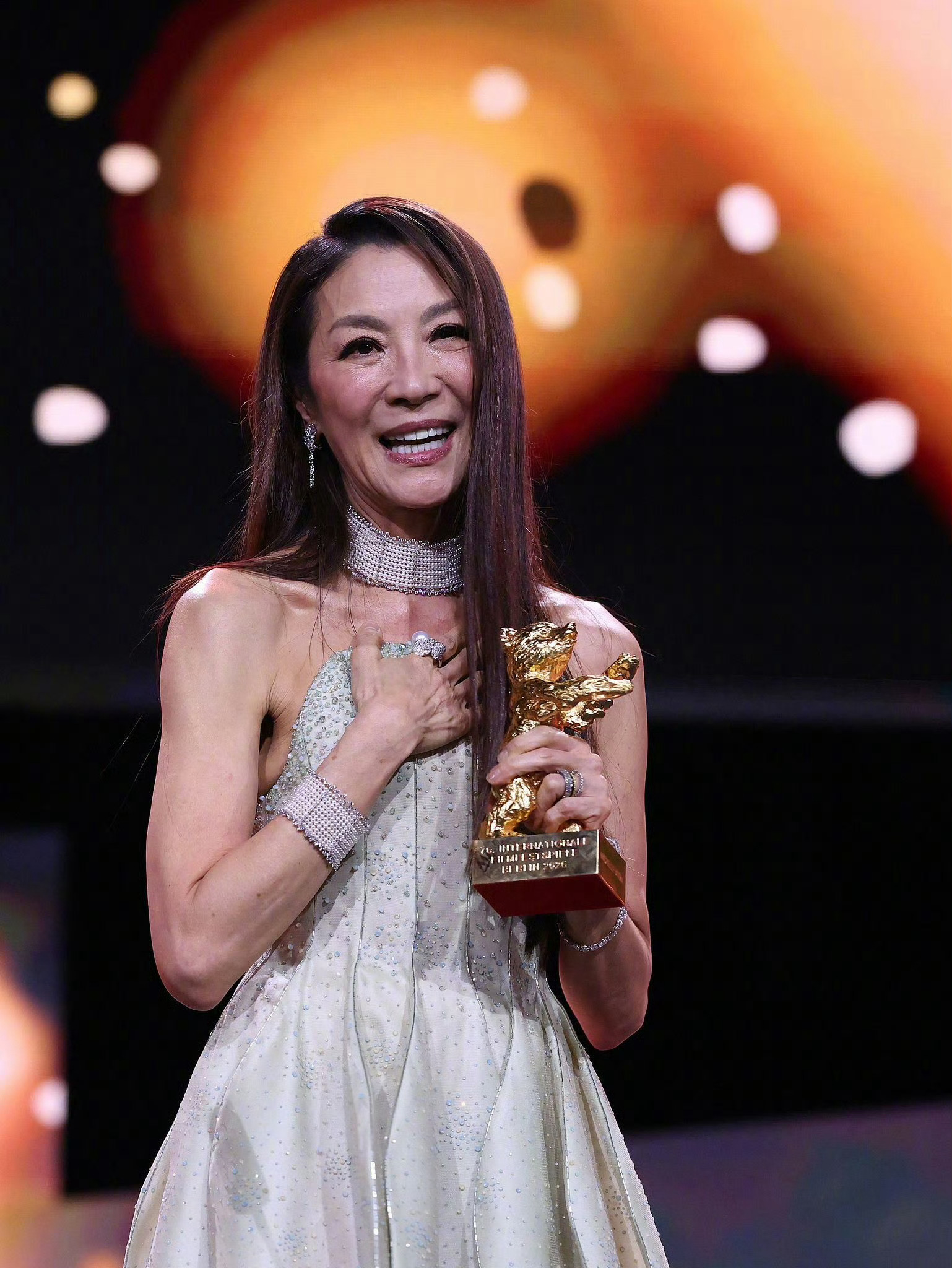 杨紫琼 获得柏林电影节终身成就奖,穿着刚发布的Armani Privé 2026春夏高定系列拿奖,优雅清新的缎面配色,璀璨闪耀的水晶珠片,影后配顶级高定,真是容光焕发啊!🏆 杨紫琼柏林电影节终身成就奖时尚灵感解读
