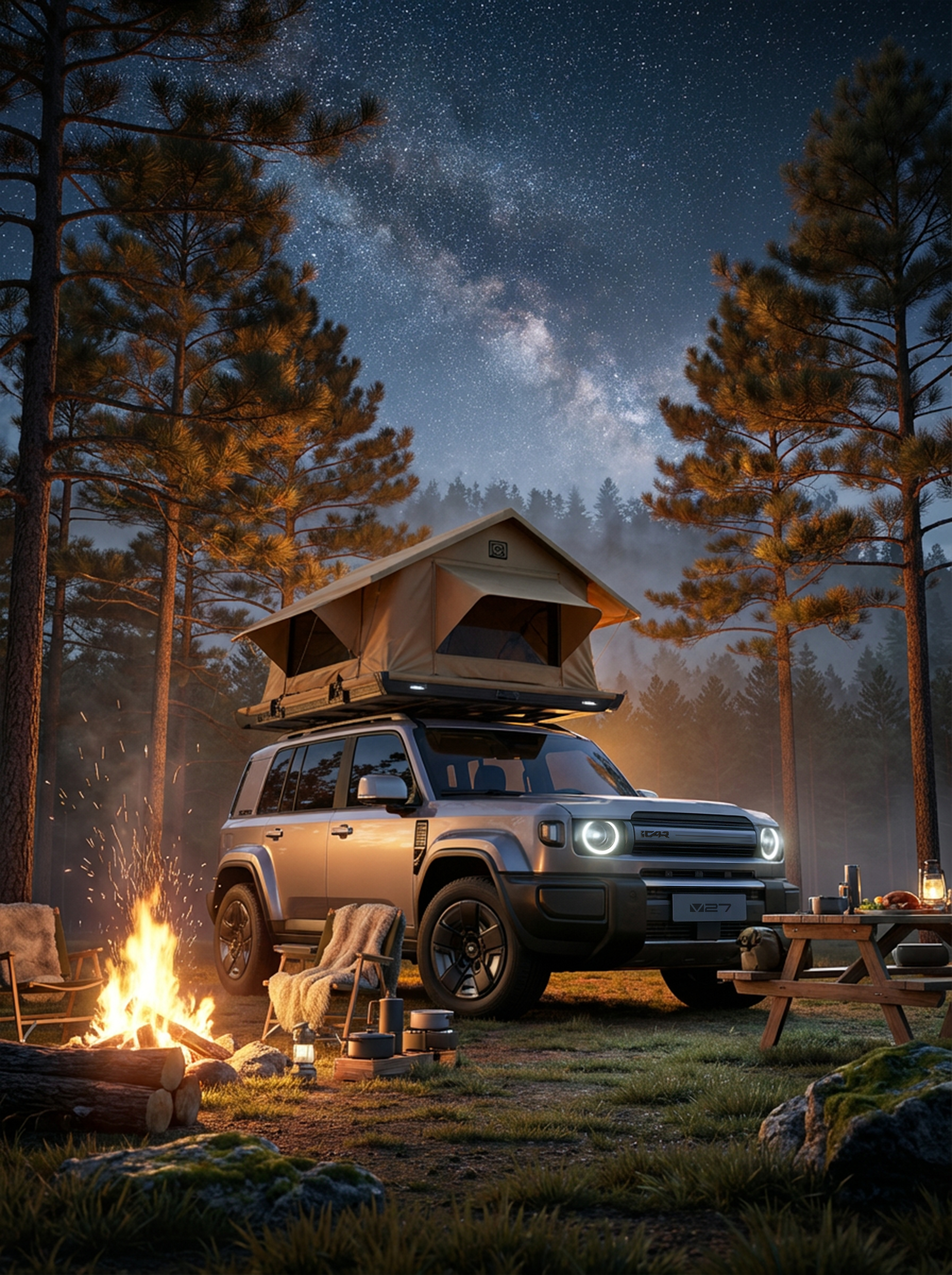 iCAR V27 给你 “风格自由”墨绿复古款配木质行李架,开在英伦街道像老电影里的优雅探险家;哑光黑武士版裹满冷冽感,黄昏天台甩尾时,帅得快门都追不上;赛道款贴满拉花,轮胎擦出火花的瞬间,硬派 SUV 也能炸场赛道;露营风搭上车顶帐篷,森林星空下围炉煮茶,野趣和精致直接拉满。方脸圆灯的复古骨相,能 hold 住所有风格的外观 buff,可否称为新能源硬派 SUV 里的颜值六边形战士?这波风格杀你 pick 哪款?