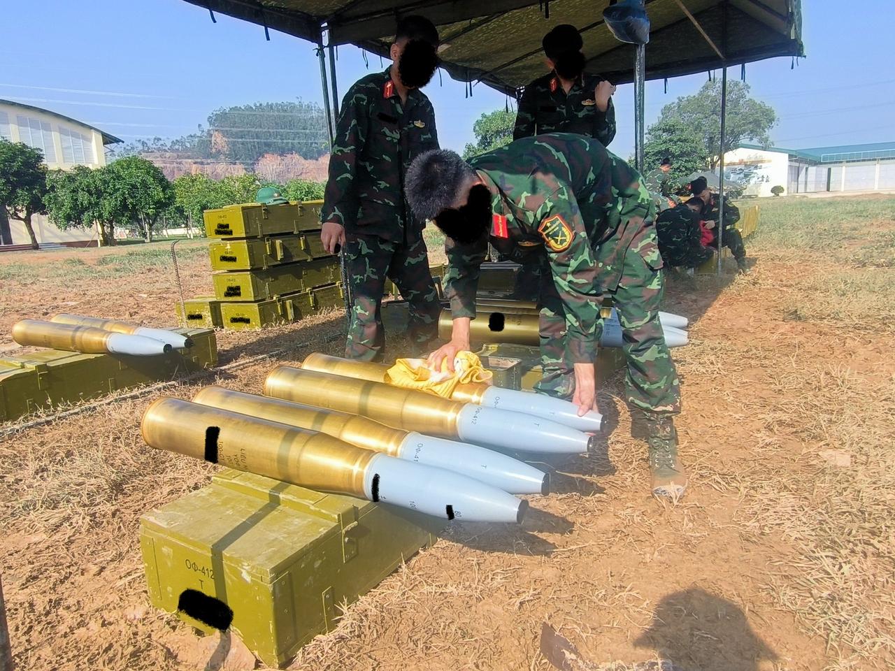 越南人民军的“OF-412”坦克兵正在实弹射击演习前准备100毫米高爆破片炮弹。目前,越南所有T-54/55系列坦克,包括升级后的T-54M坦克,均可使用此类炮弹打击战场上的软目标。